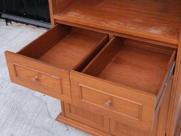 ตู้โครงไม้สัก 2 ลิ้นชัก 2 บานเปิดตู้วางทีวี งานโรงแรม