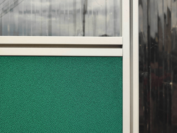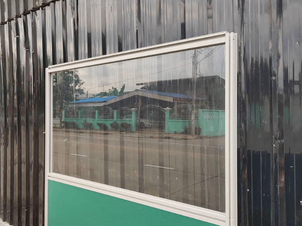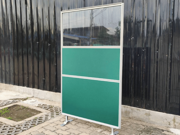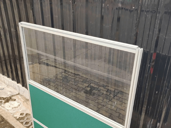 พาทิชั่น แผ่นฉากกั้นสำนักงาน กั้นโซนทำงาน สีส้ม ล่างทึบ บนกระจก (2)