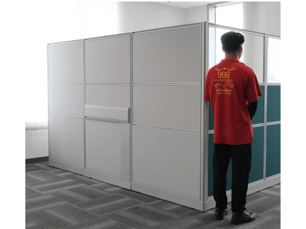 พาทิชั่นทึบ / พาทิชั่นกระจกด้านบน ทึบล่าง มีเสาร้อยสายไฟ Rockworth