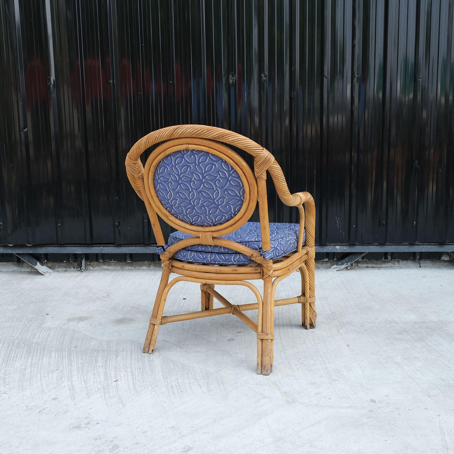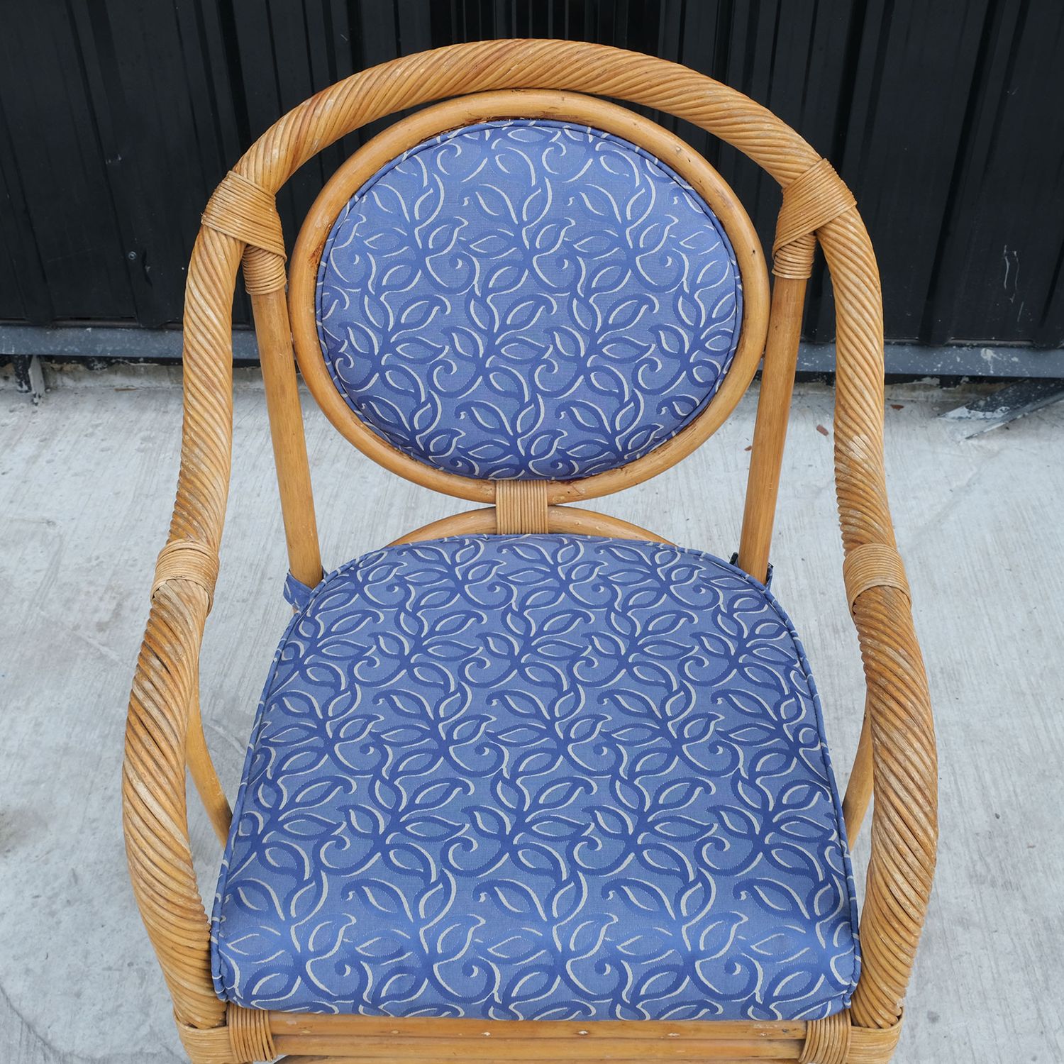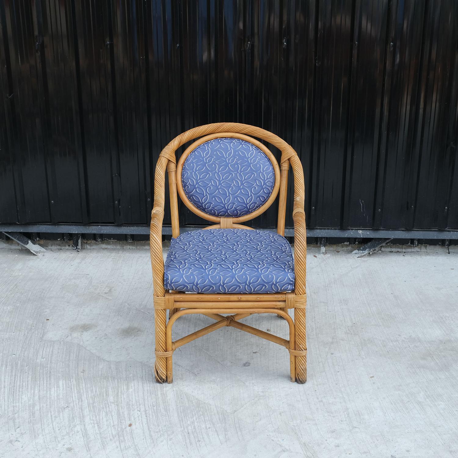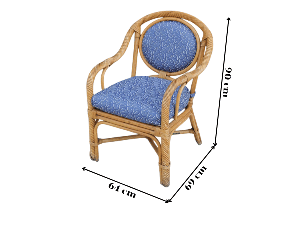 เก้าอี้หวายจริง บุผ้าสีน้ำเงินเก้าอี้หวายแท้ เก้าอี้พักผ่อน