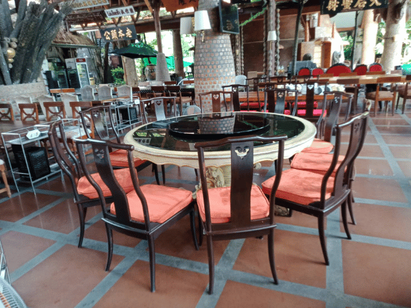 เก้าอี้ไม้สักแท้ เก้าอี้ร้านอาหาร เบาะผ้าสีส้ม งานโรงแรม-size