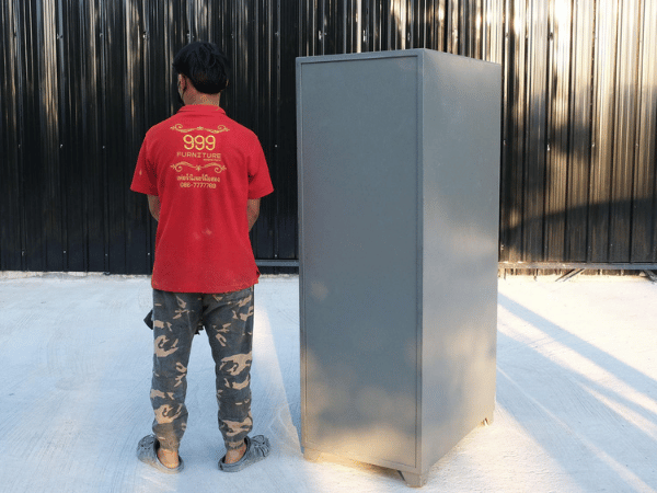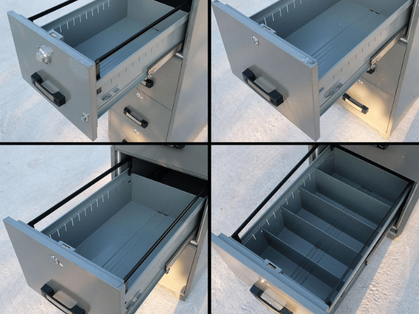 悬挂式木质文件柜,2 扇门,灰色垂直手柄。