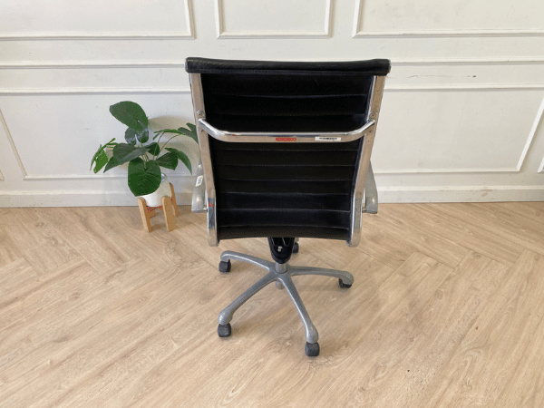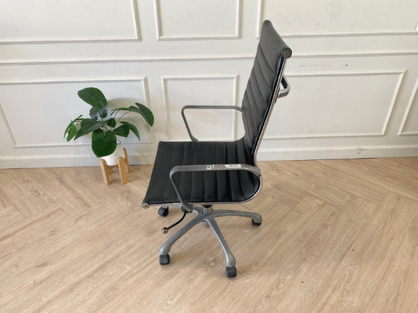 办公椅网状靠背添加一个大头枕、黑布座椅和钢制手臂和腿。