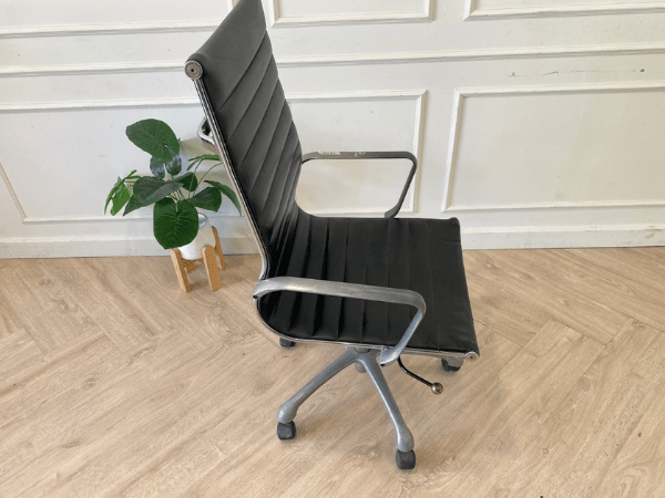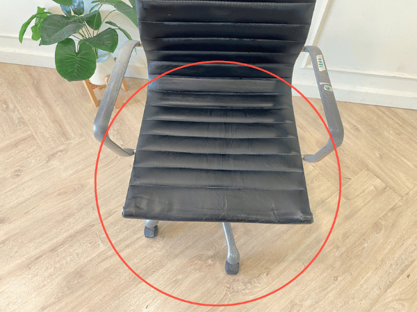 深棕色皮椅,黑钢腿,U型。