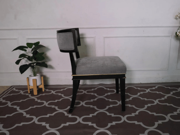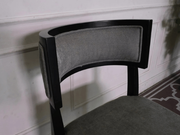 木椅,深灰色布艺坐垫,漂亮的框架,带软垫的靠背。