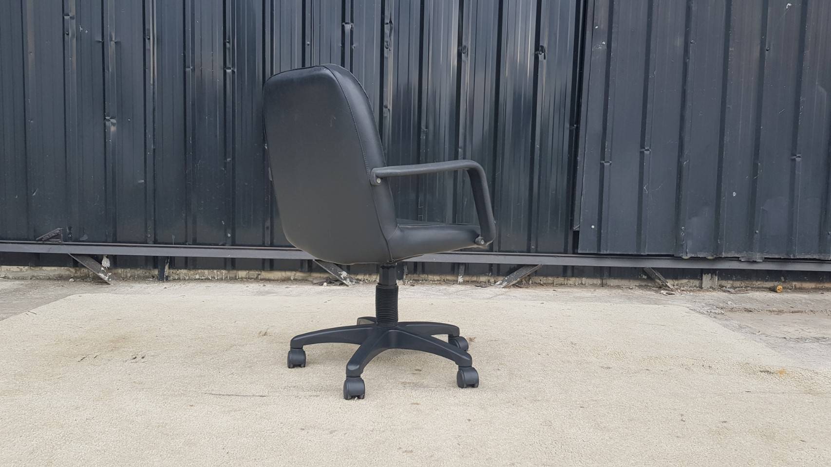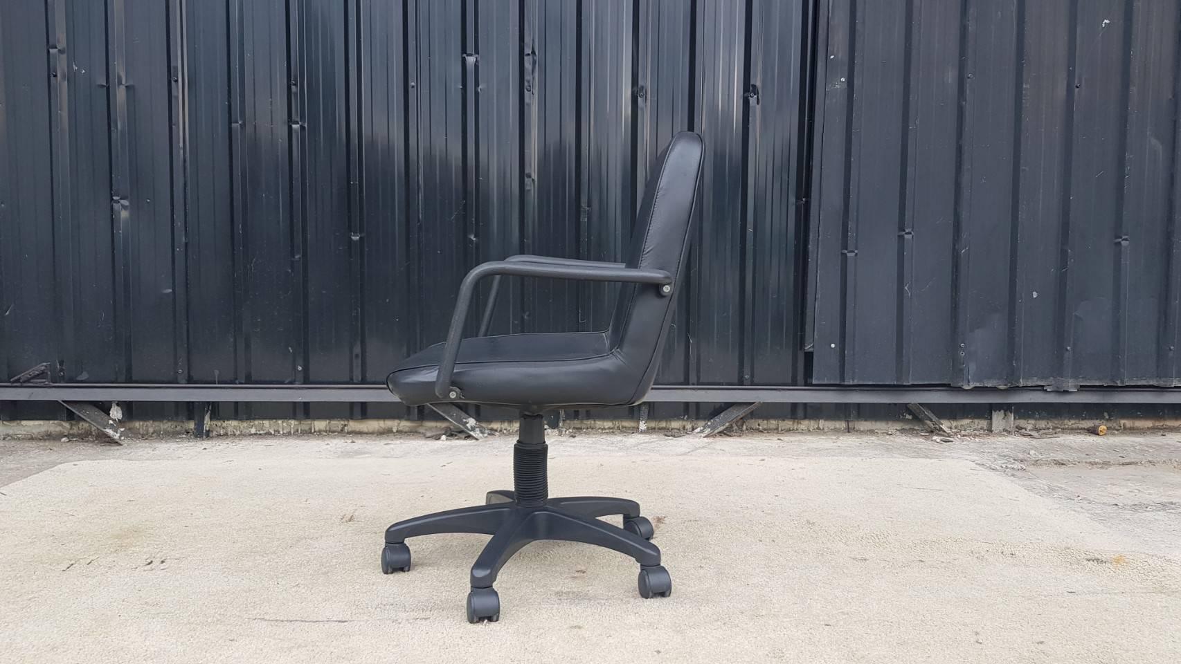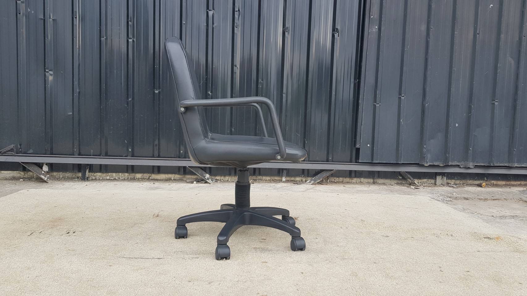 Modernform品牌办公椅,黑色皮革座椅,钢制椅腿,高102厘米。