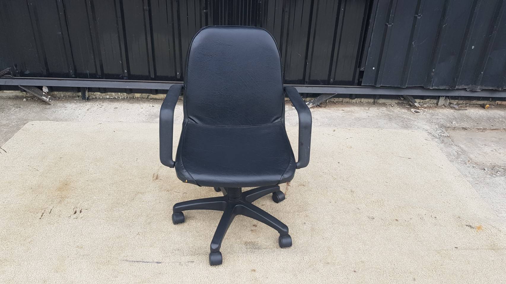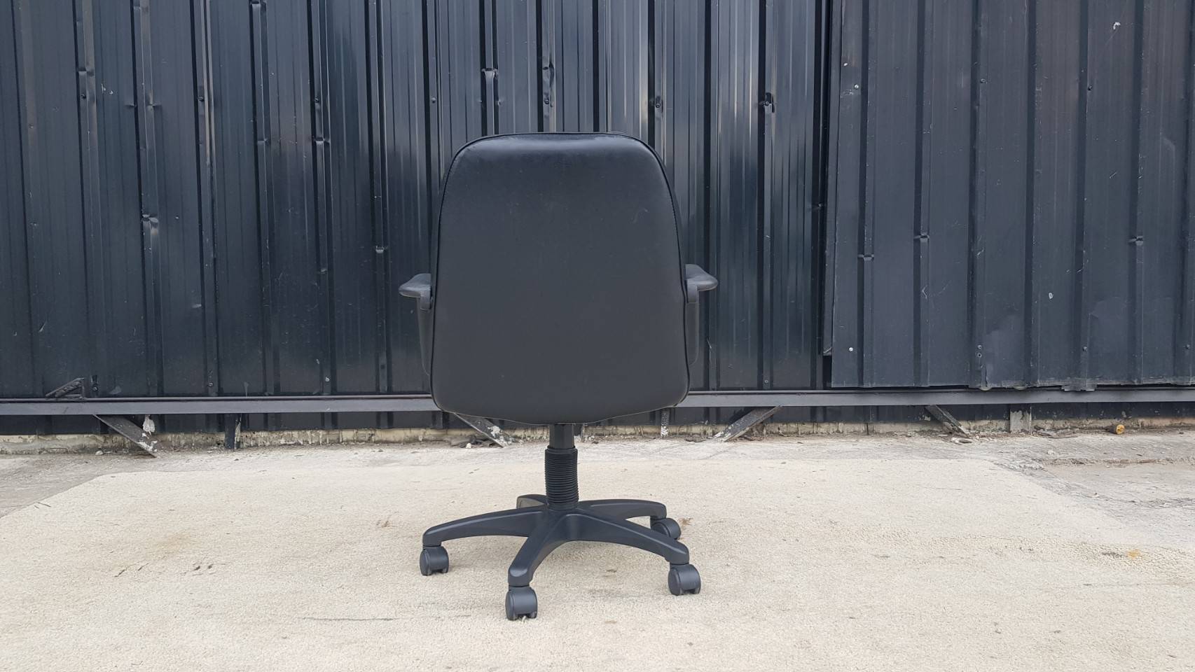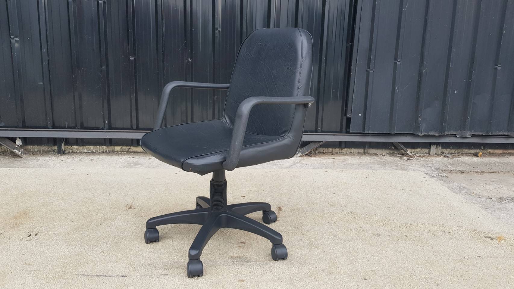 Modernform品牌办公椅,黑色皮革座椅,钢制椅腿,高102厘米。