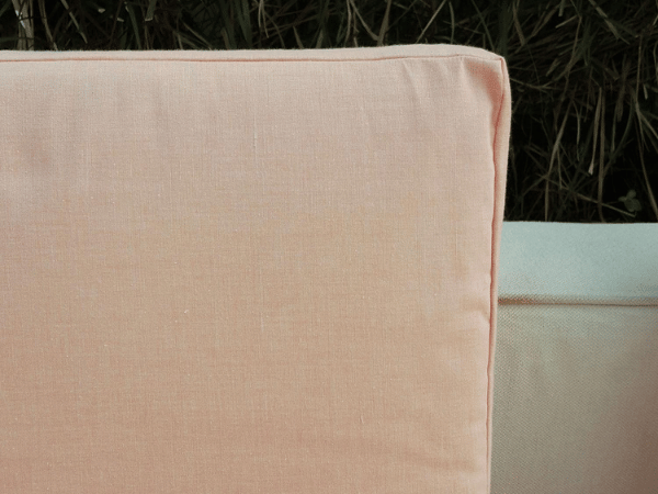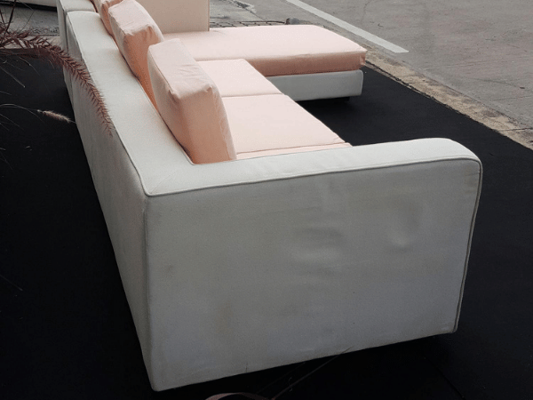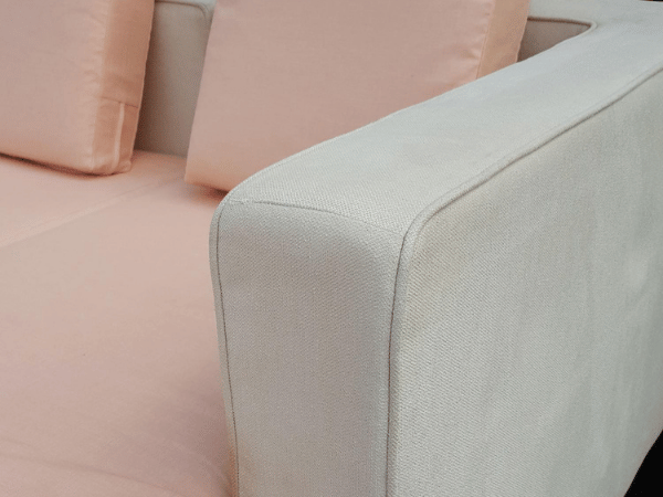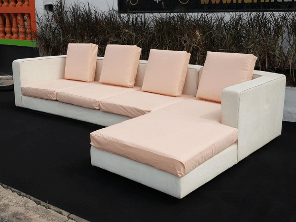 El Sofa, L-Shape corner sofa, 4 seats, cream-peach fabric upholstery.