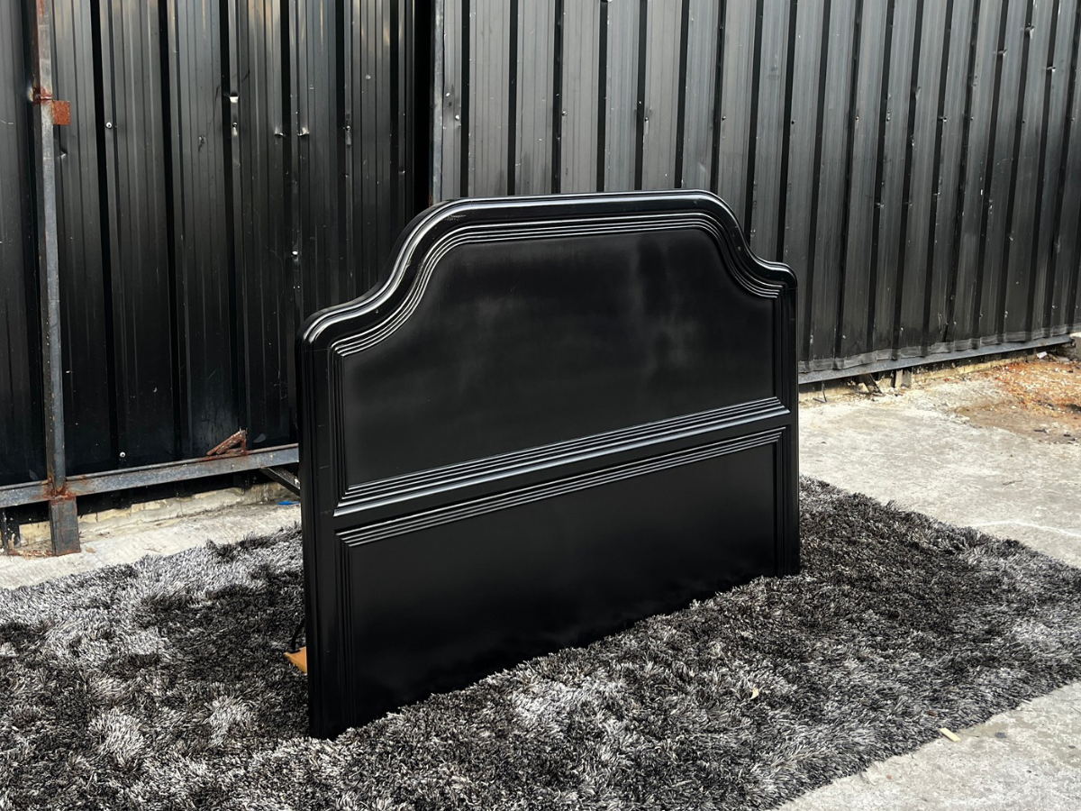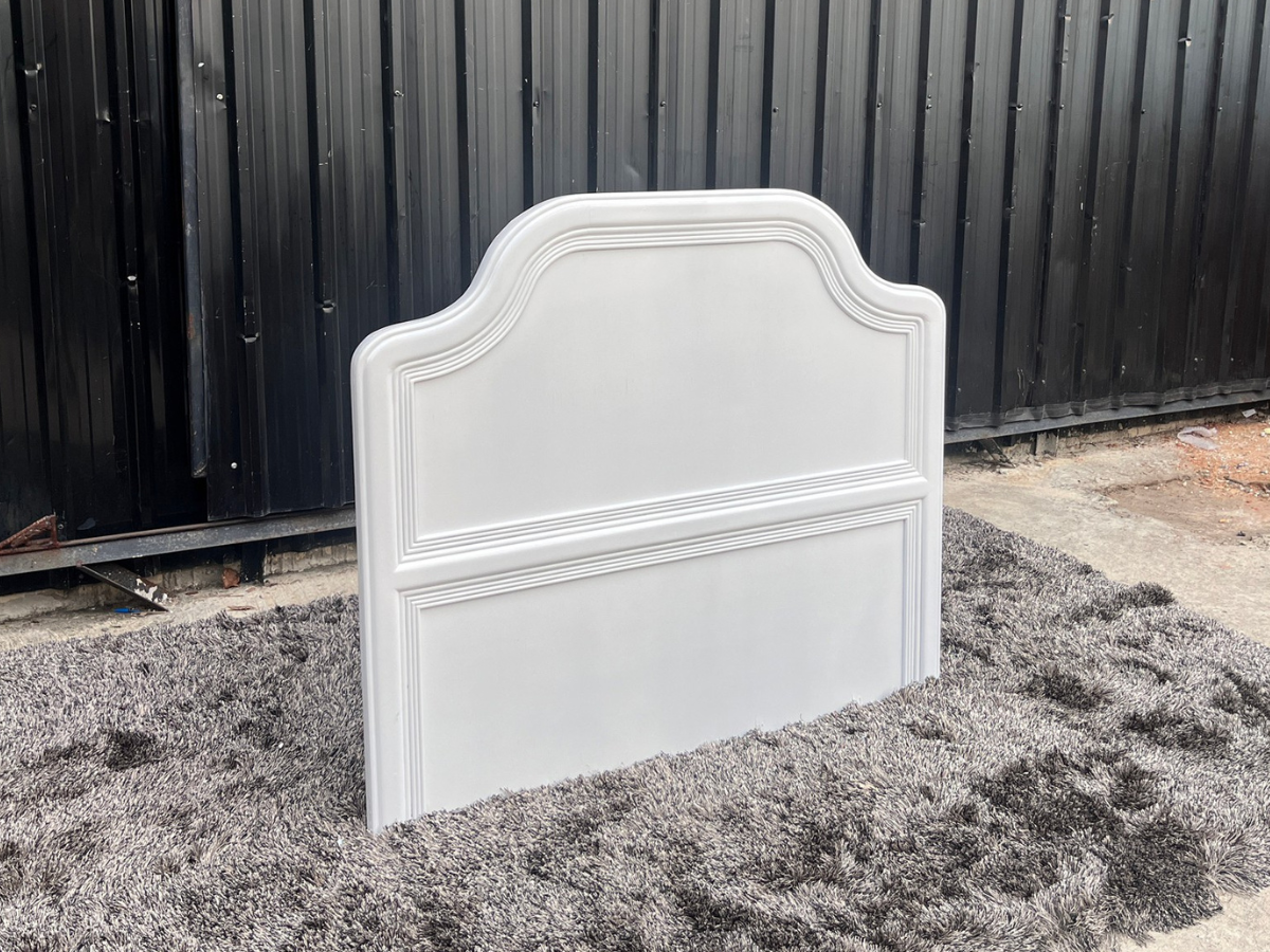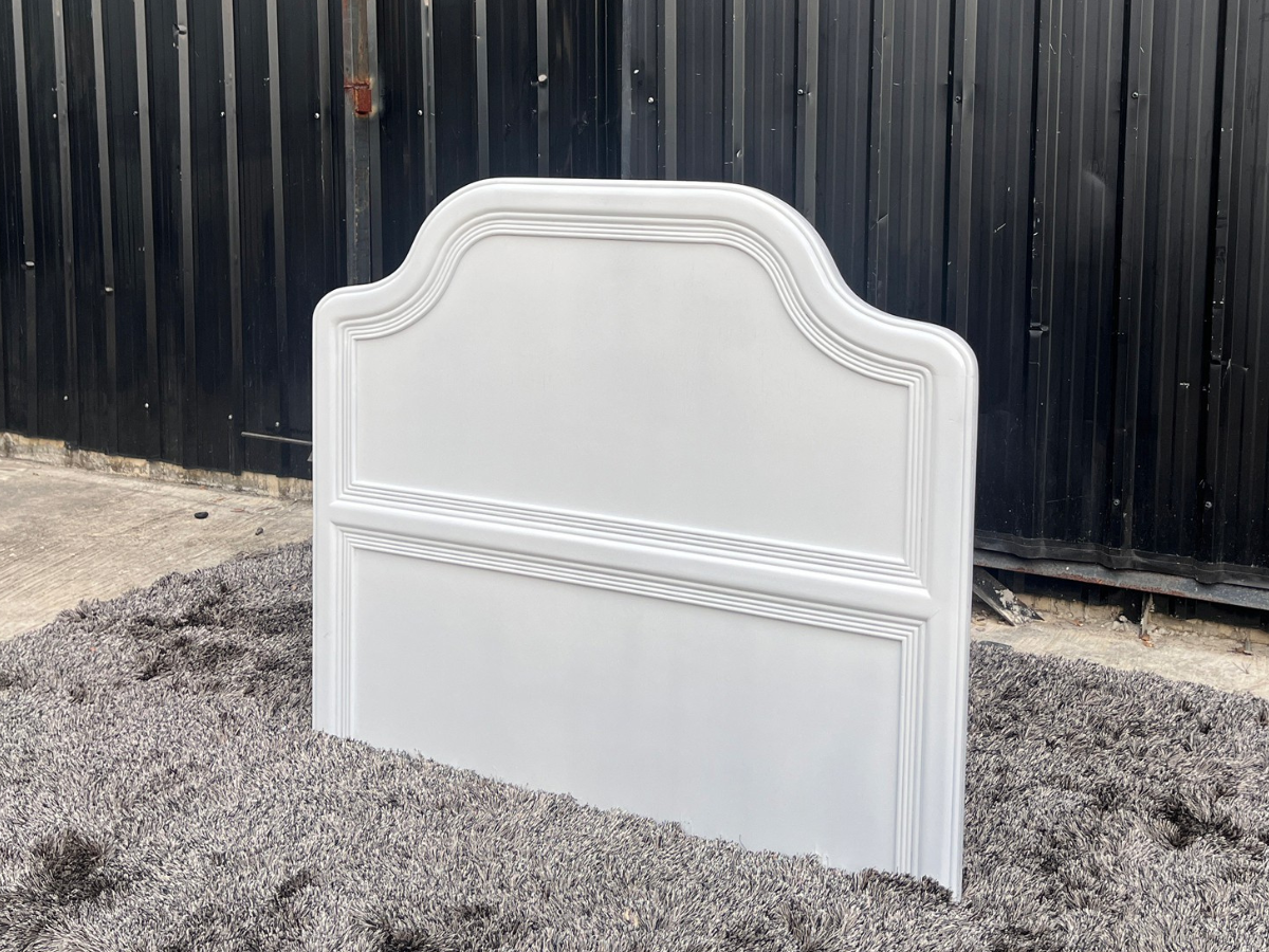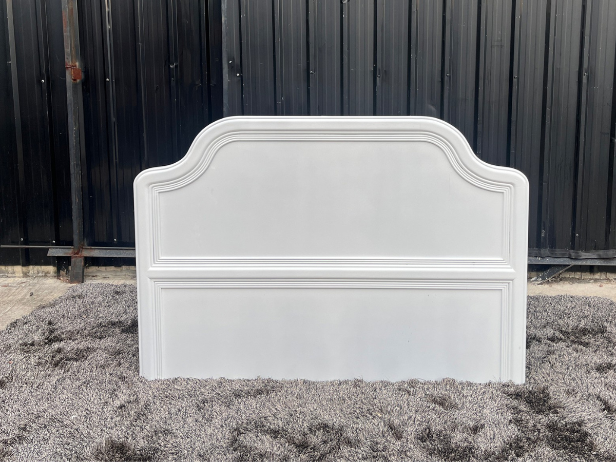 Bed with headboard, white wooden frame, with mattress