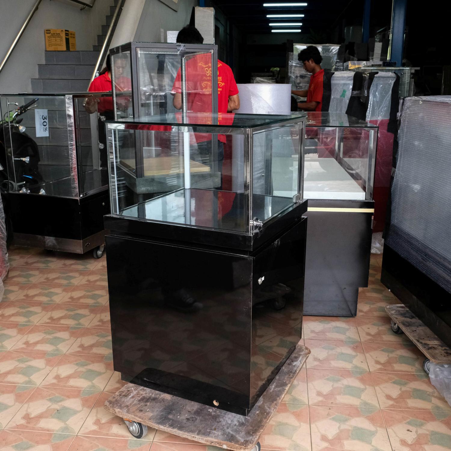 Jewelry cabinet, glass display cabinet, phone display cabinet, sliding glass door, black