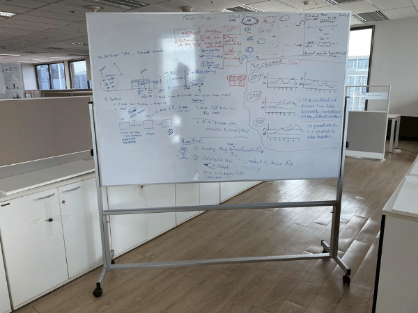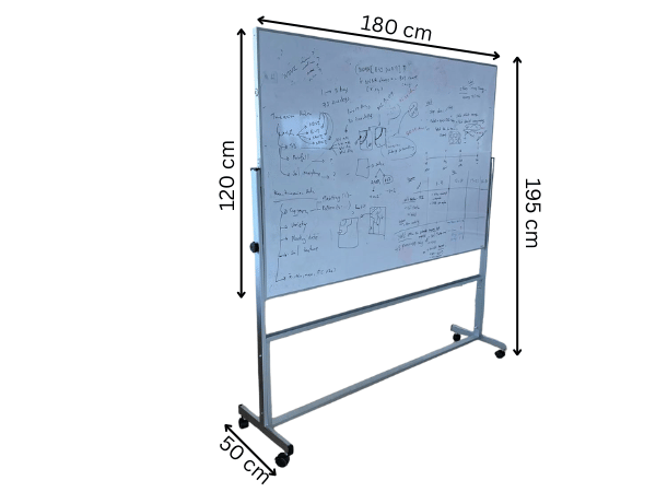 Magnetic whiteboard with stand, 2 sides, 120x180 cm