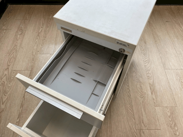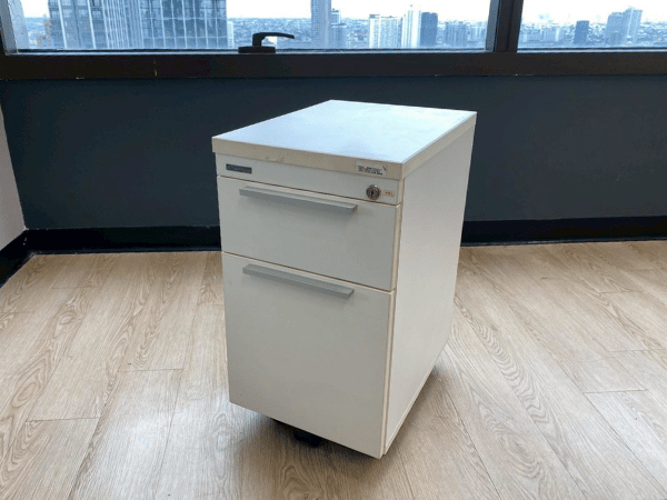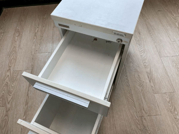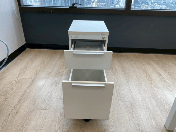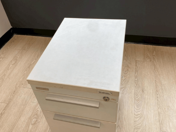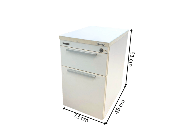 2-drawer filing cabinet, wooden frame, cream color