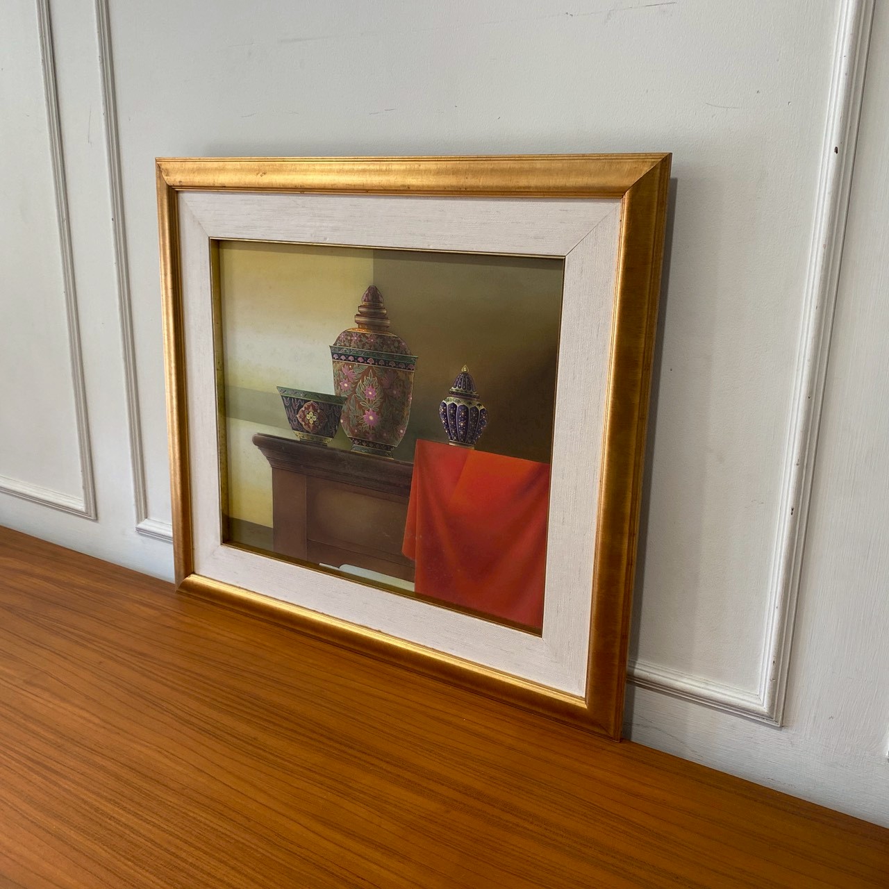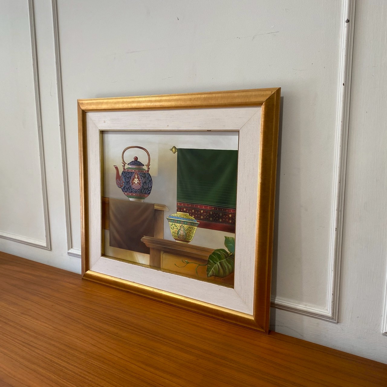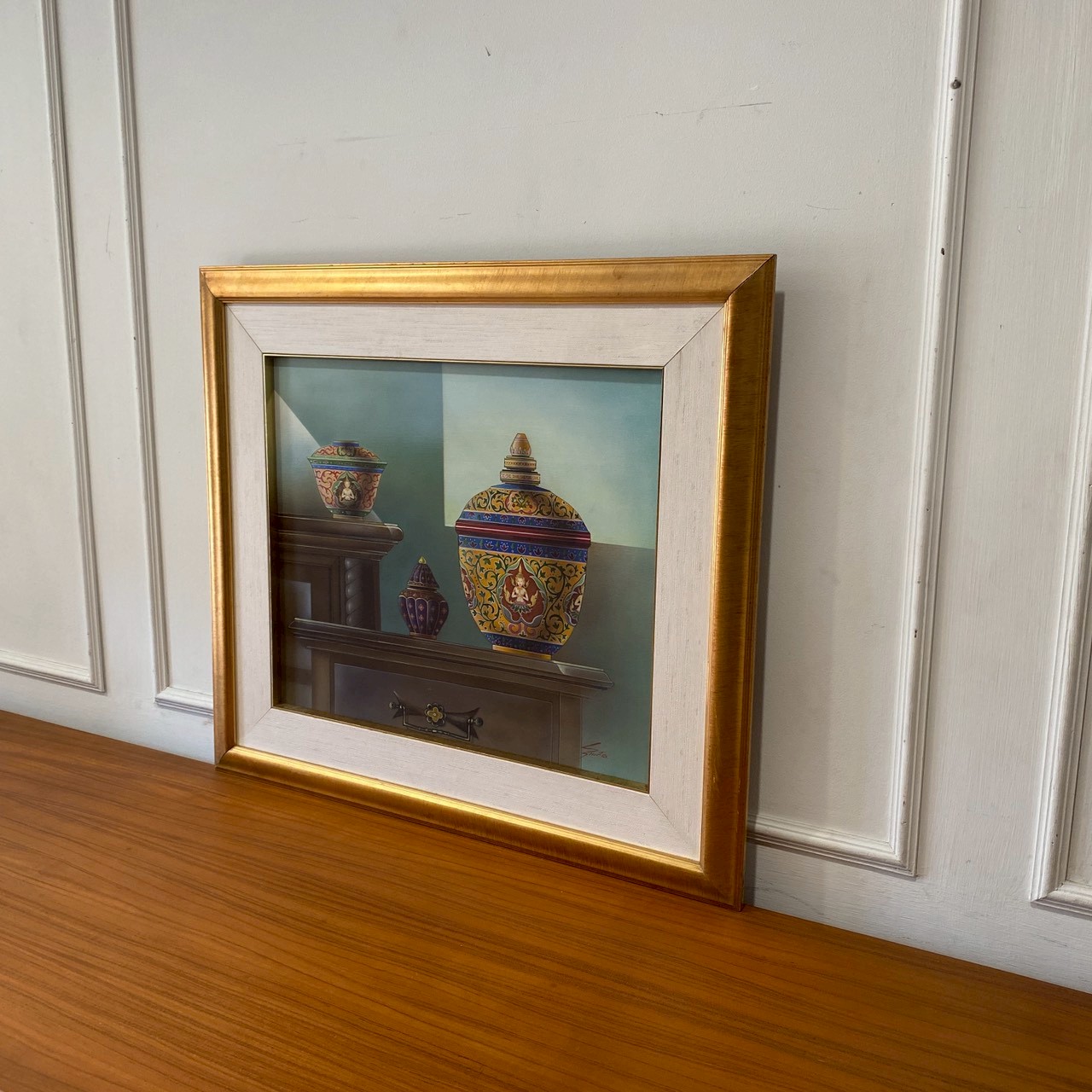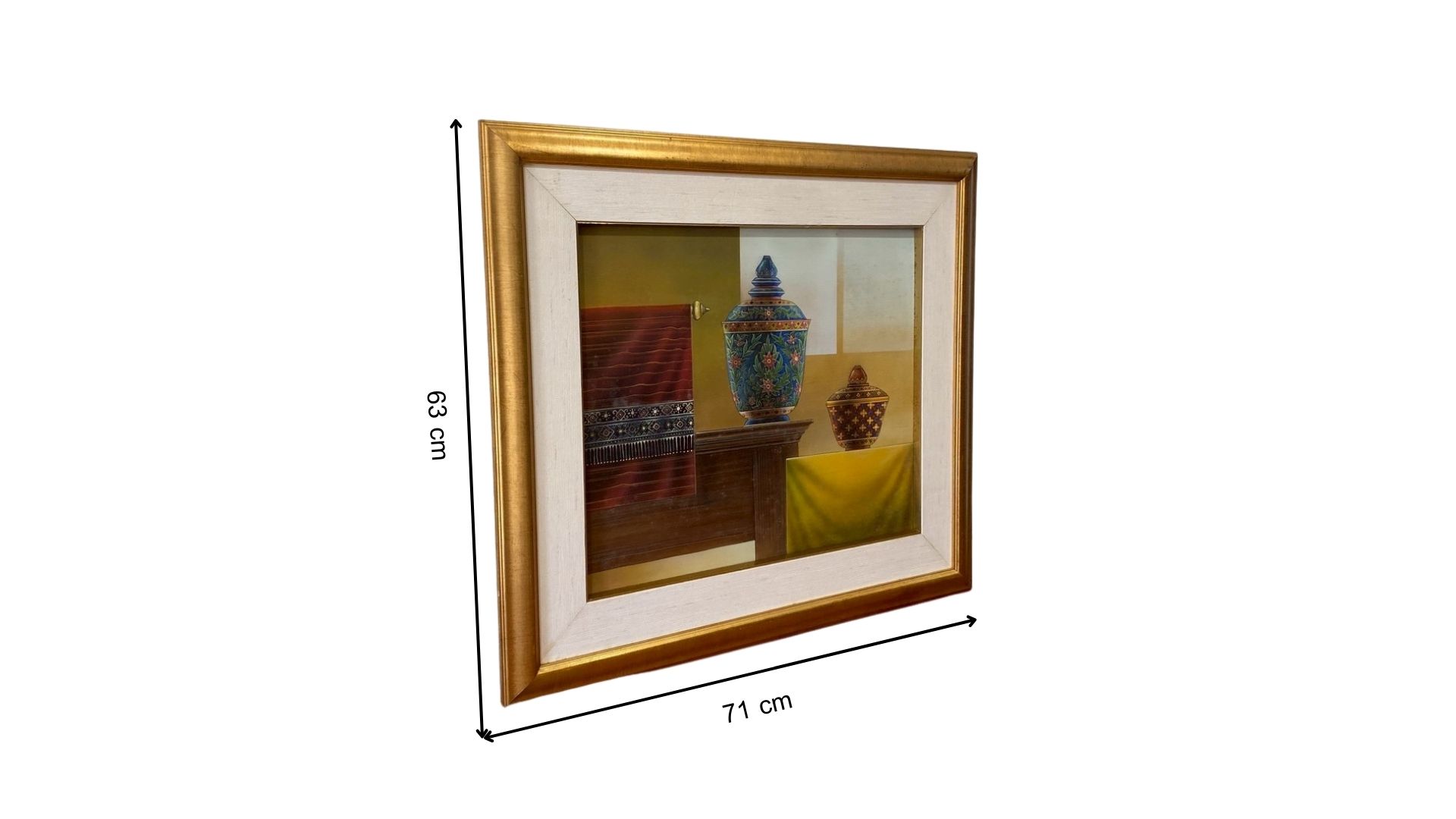Oil painting, Benjarong porcelain, gold frame, 71 cm wide.