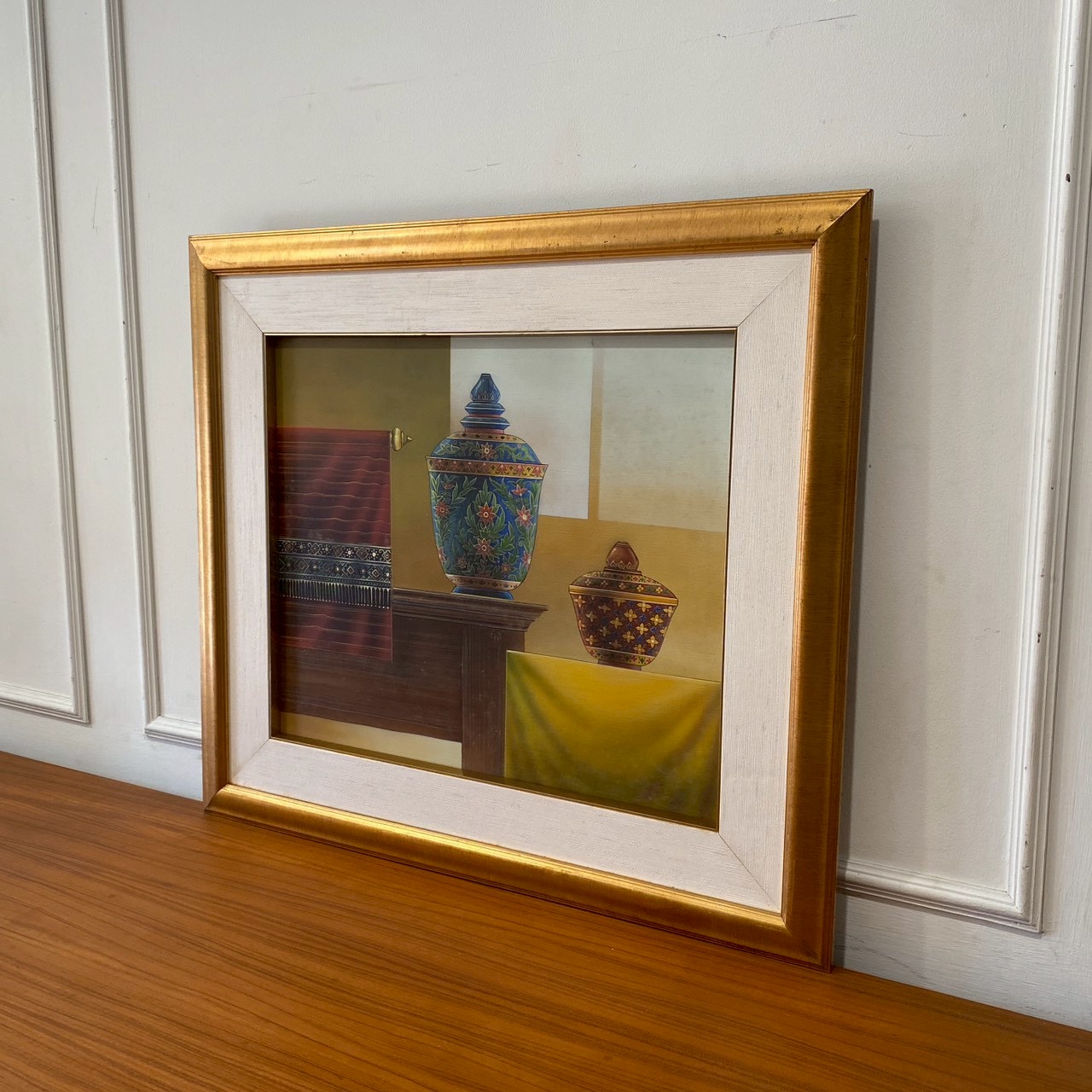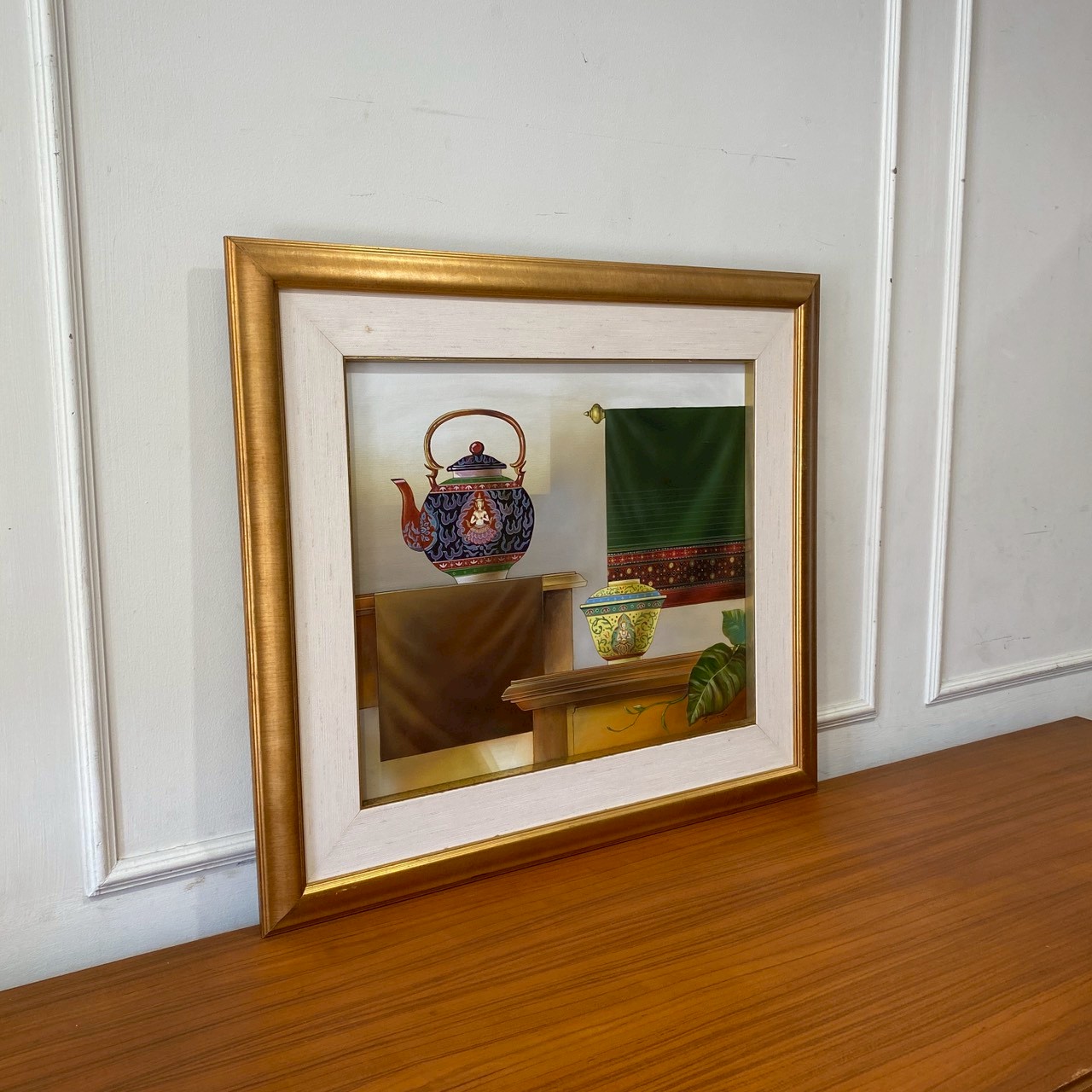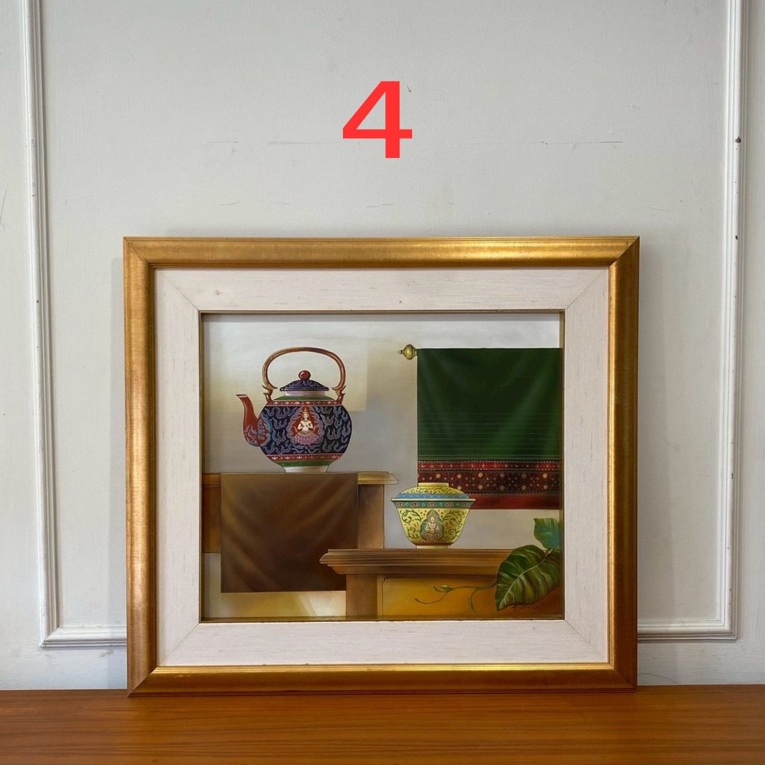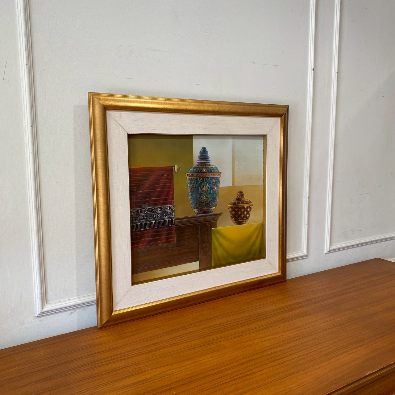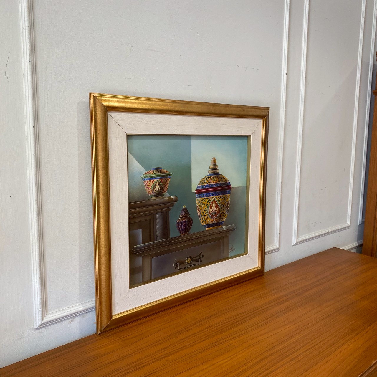 Oil painting, Benjarong porcelain, gold frame, 71 cm wide.