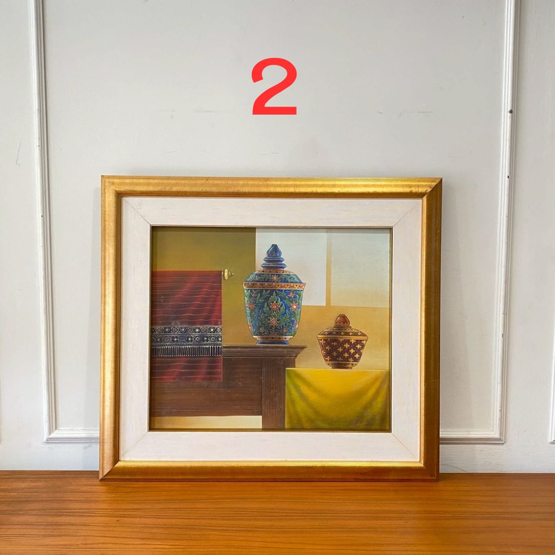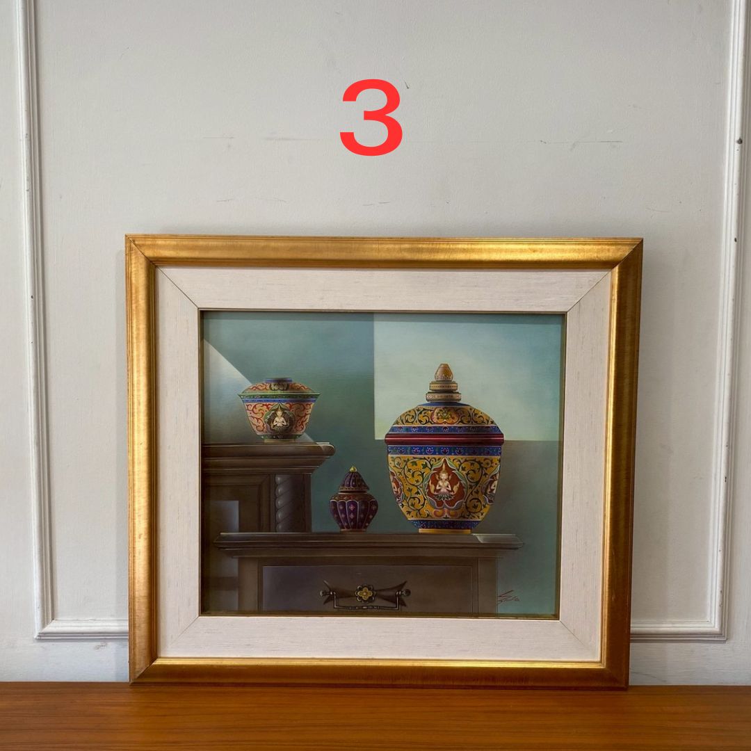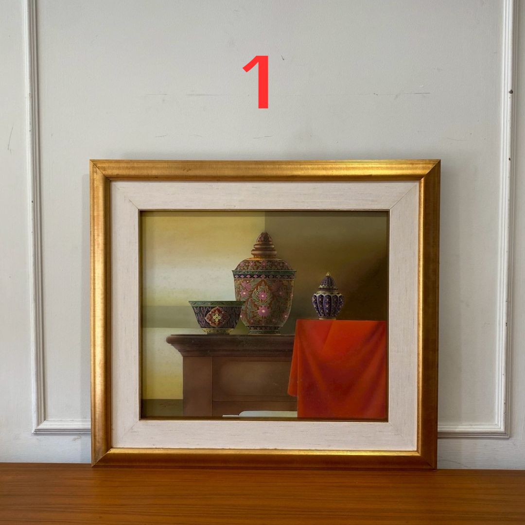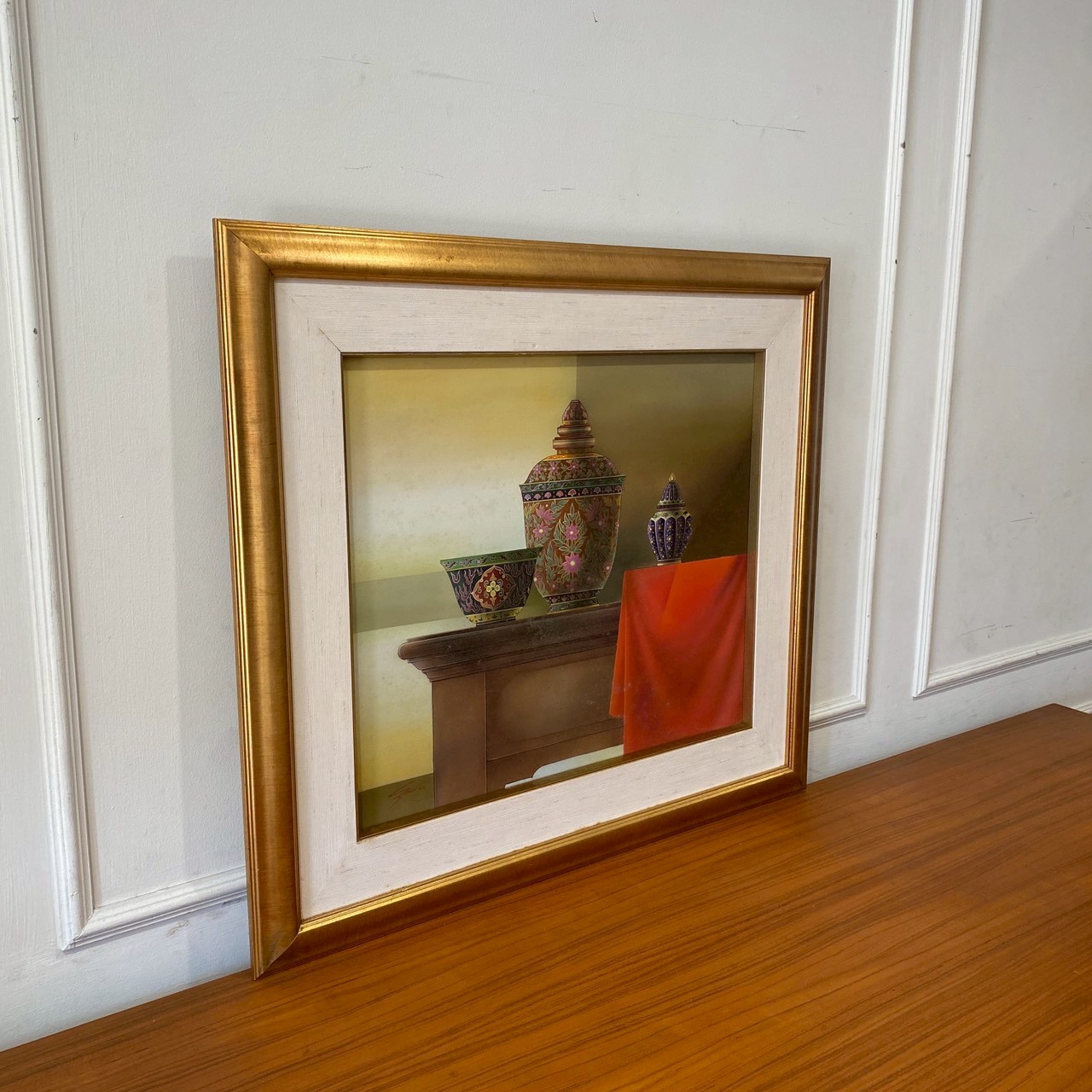 Oil painting, Benjarong porcelain, gold frame, 71 cm wide.