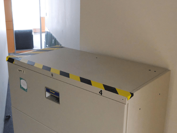 White 8-door wooden filing cabinet