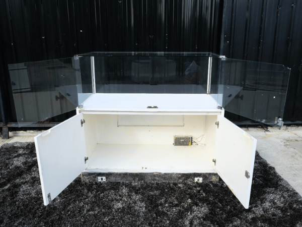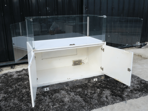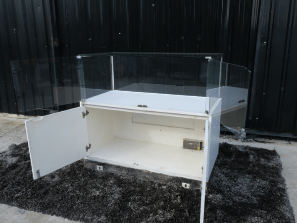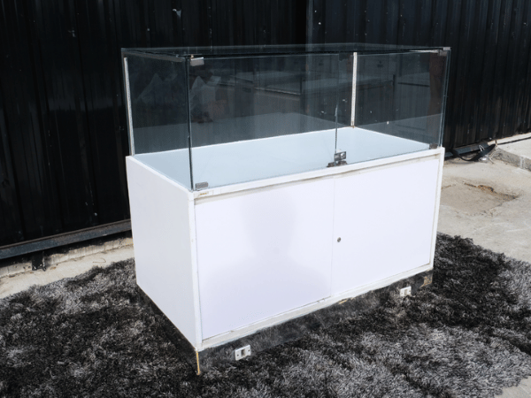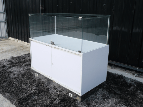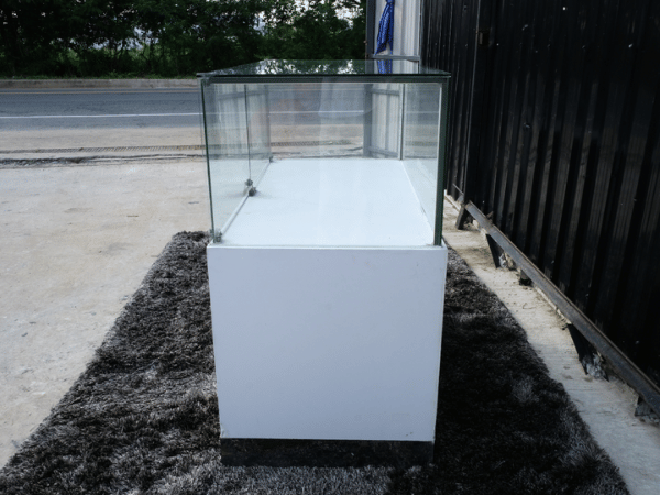 ตู้จิวเวลรี่ ตู้กระจกโชว์สินค้า ทรงสี่เหลี่ยมจตุรัส ประตูกระจก 1 บานเปิด ฐานไม้สีขาว (1)