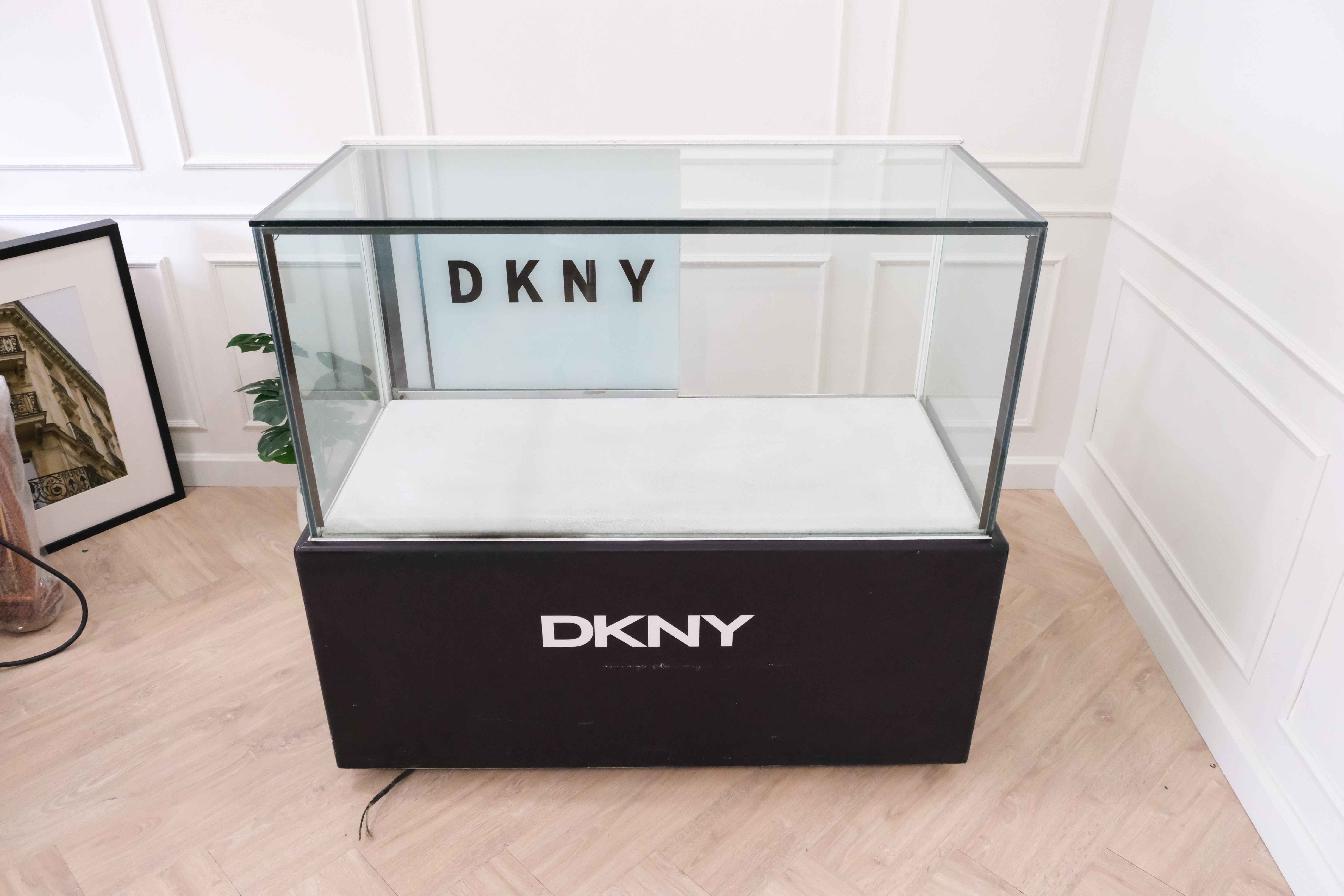 ตู้จิวเวลรี่ ตู้กระจกโชว์สินค้า ฐานดีไซน์กระจกตัดลายสแตนเลส มีตู้เก็บของ 1 บานเปิดลายหินสีเทา (1)