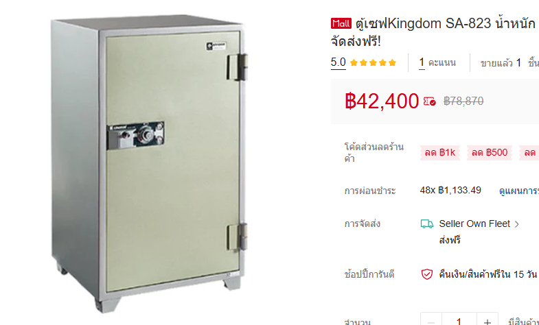 ตู้เซฟหมุนรหัส ยี่ห้อ Kingdom รุ่น SA-823