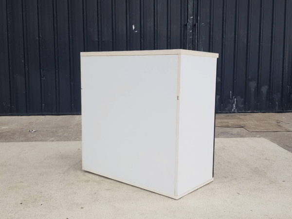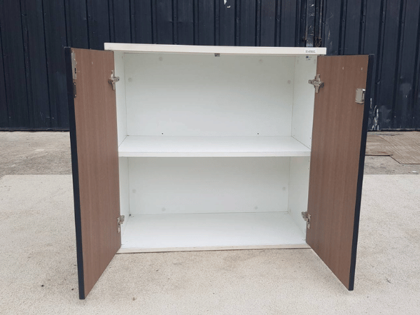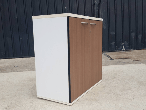 ตู้เอกสารไม้ 2 บานเปิด สีเทา ท็อปหน้าสีน้ำตาล ยี่ห้อ Modernform