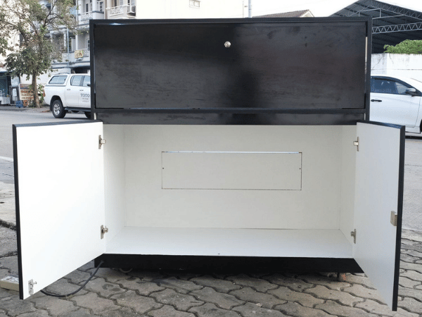 ตู้โชว์ไม้สัก 1 บานเปิดกระจก 1 บานเปิดไม้ (1)