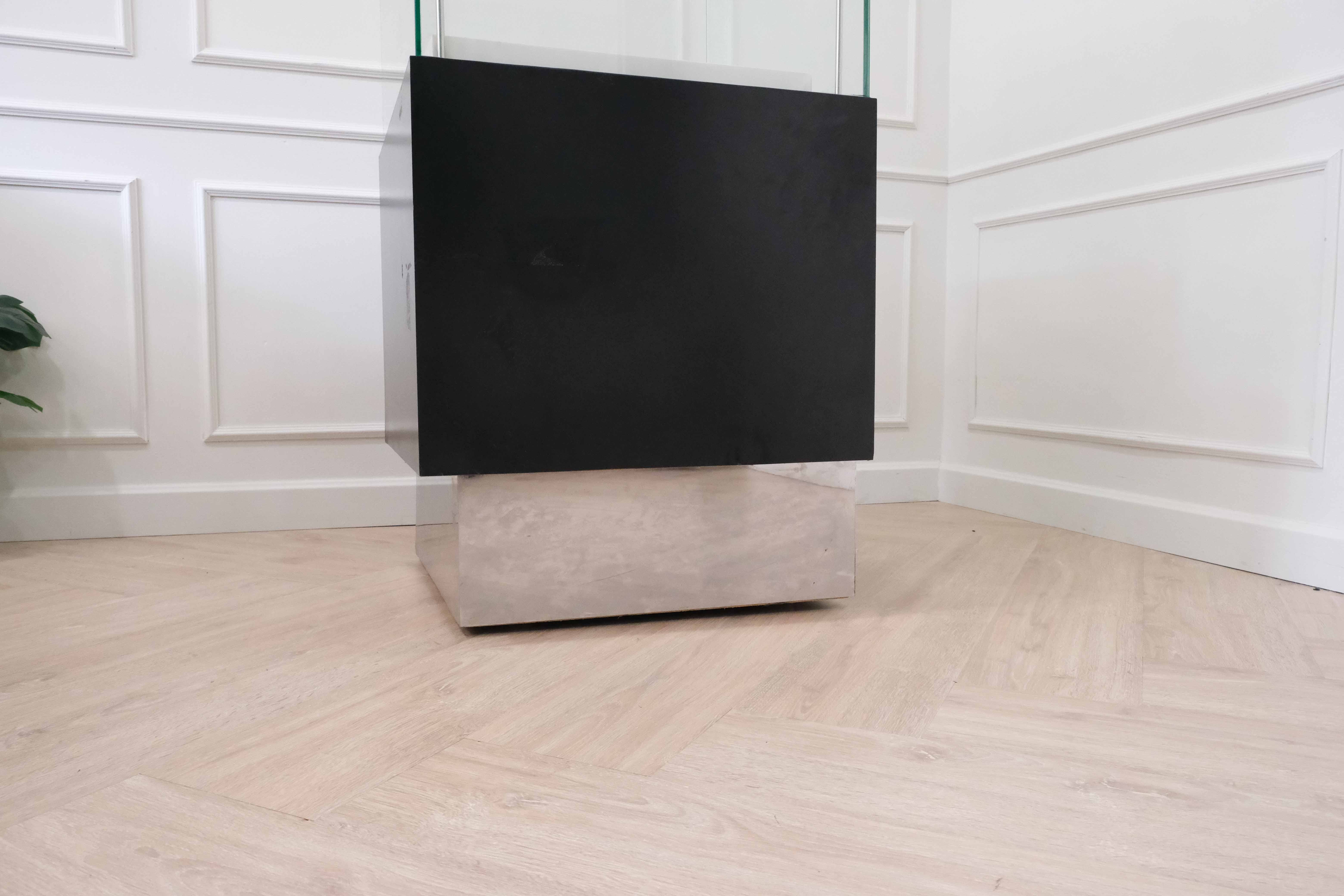 ฐานไม้สีดำ ขอบสแตนเลส มีตู้เก็บของ