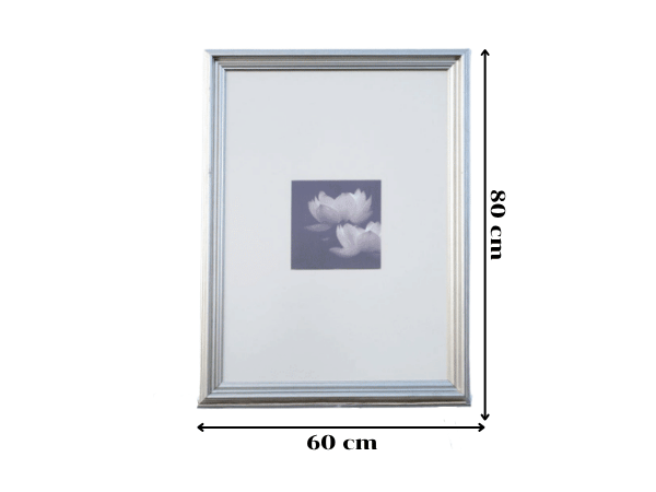 รูปภาพดอกบัวบาน 2 ดอก ขาว-ดำ กรอบสีเงิน