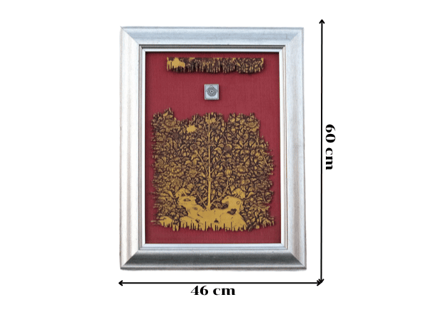 รูปภาพป่าไม้สีทองพื้นแดง กรอบสีเงิน