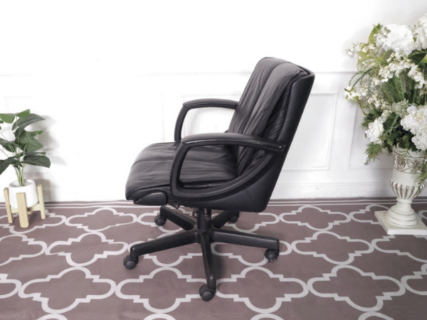 เก้าอี้สำนักงานเบาะหนัง โครงเหล็ก แขน-ขาเหล็ก (1)