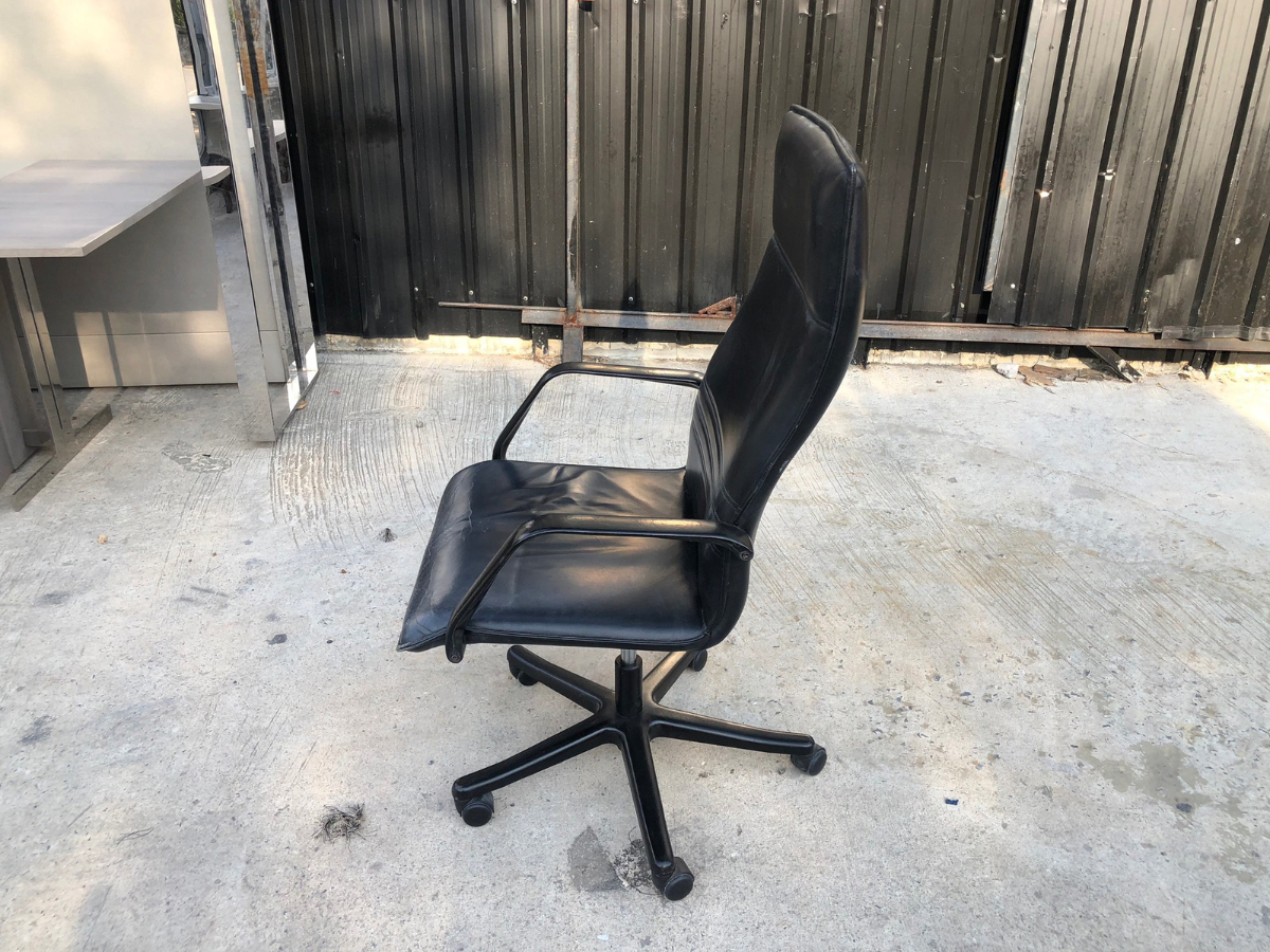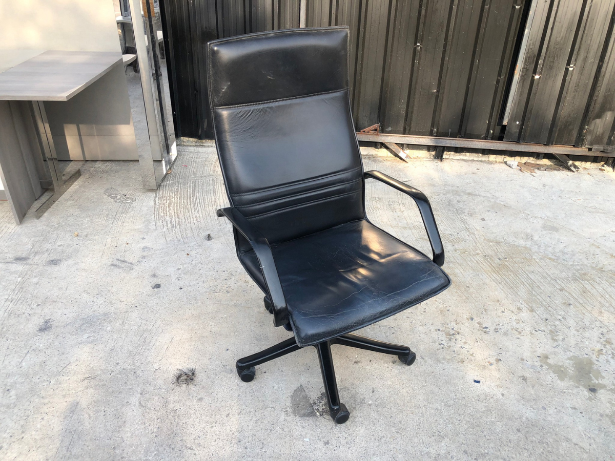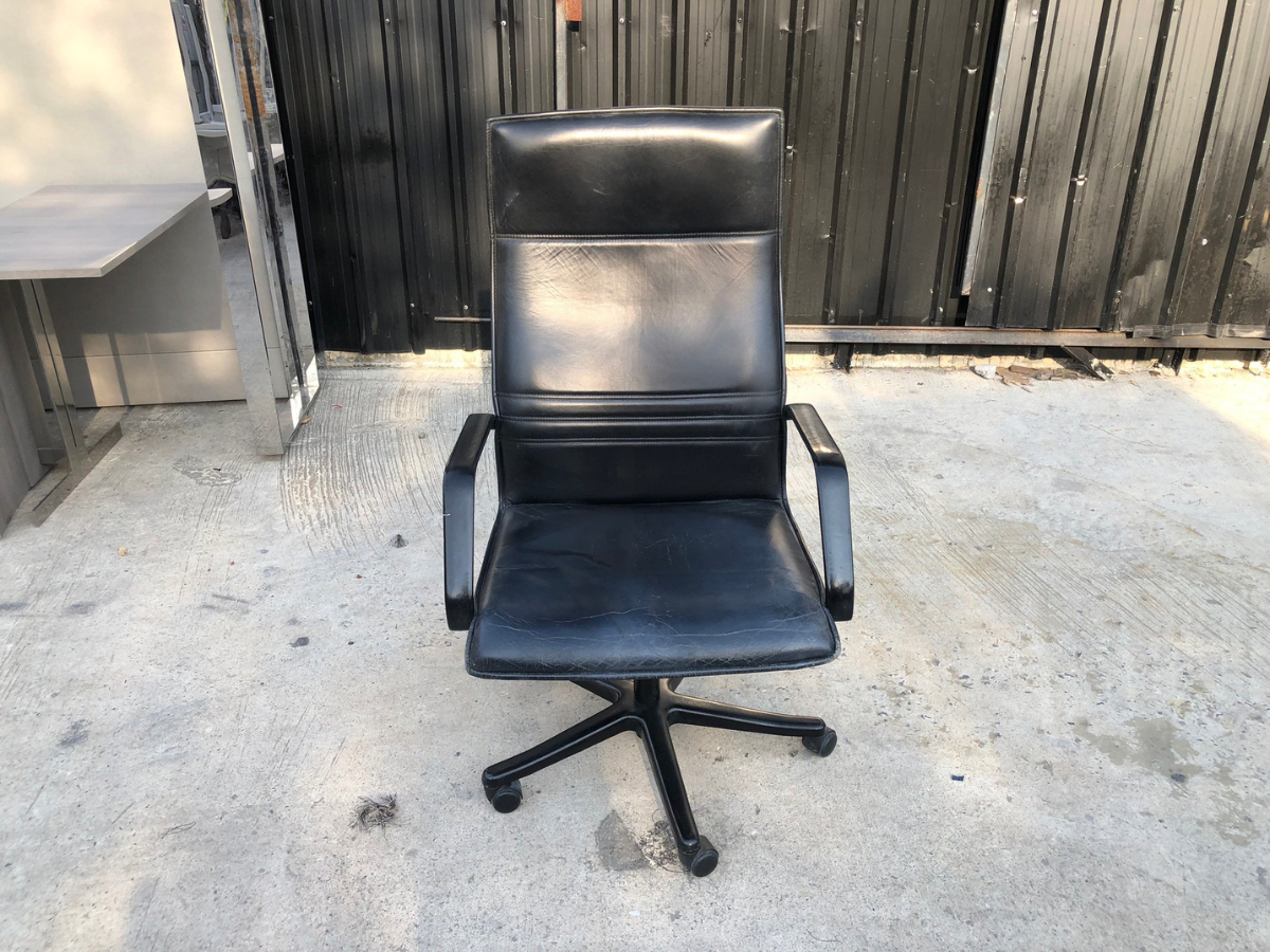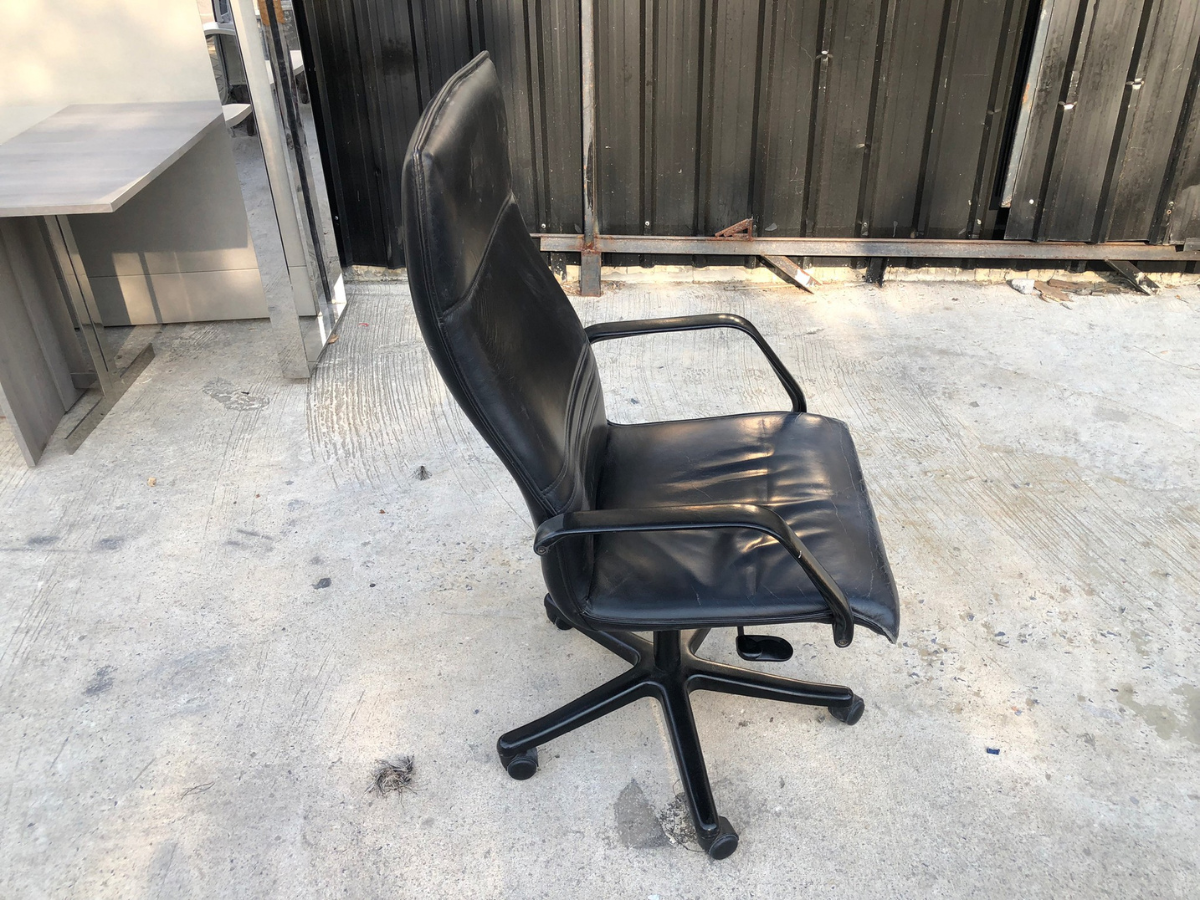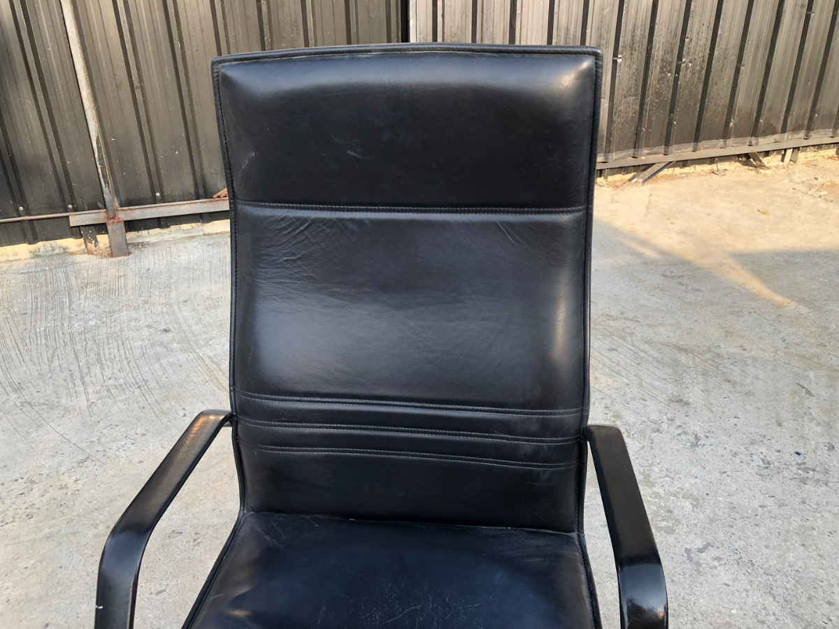 เก้าอี้สำนักงานเบาะหนัง โครงเหล็ก แขน-ขาเหล็ก (1)