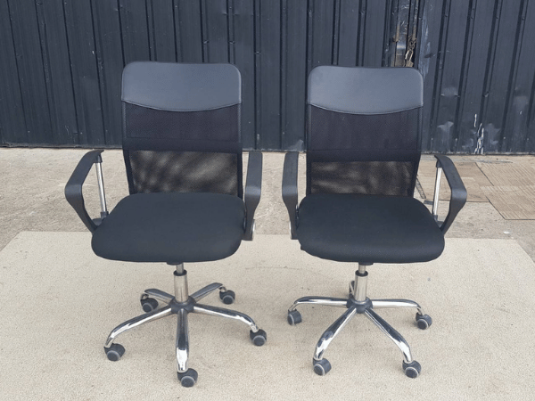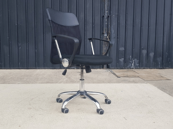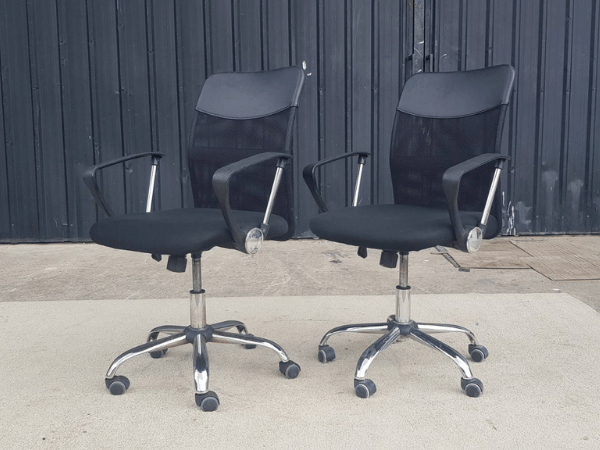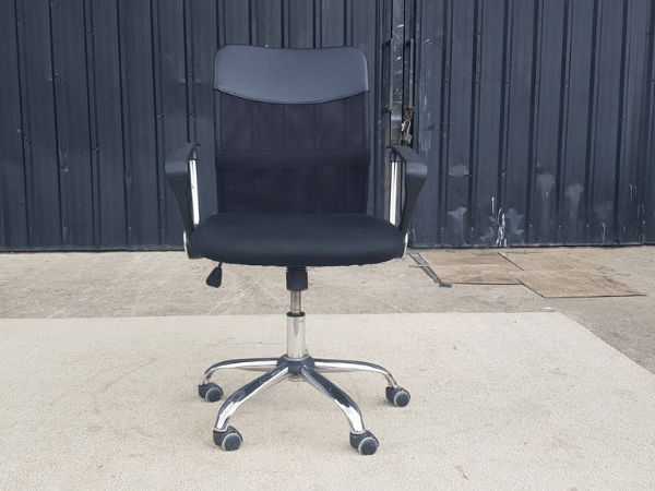 เก้าอี้สำนักงานเบาะผ้า หลังตาข่ายทรงโค้ง แขนดำ (6)