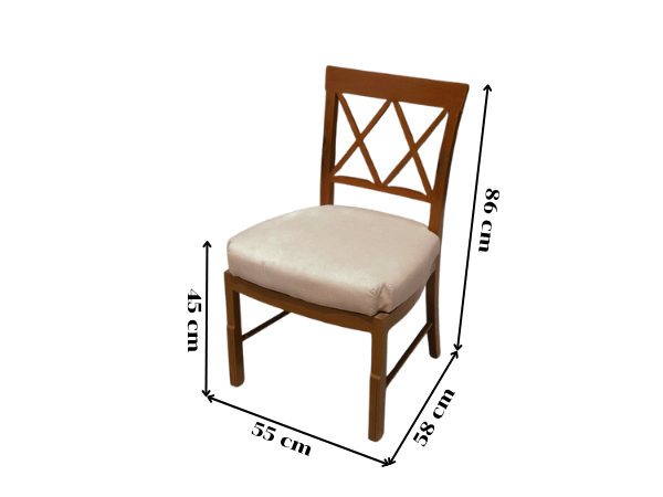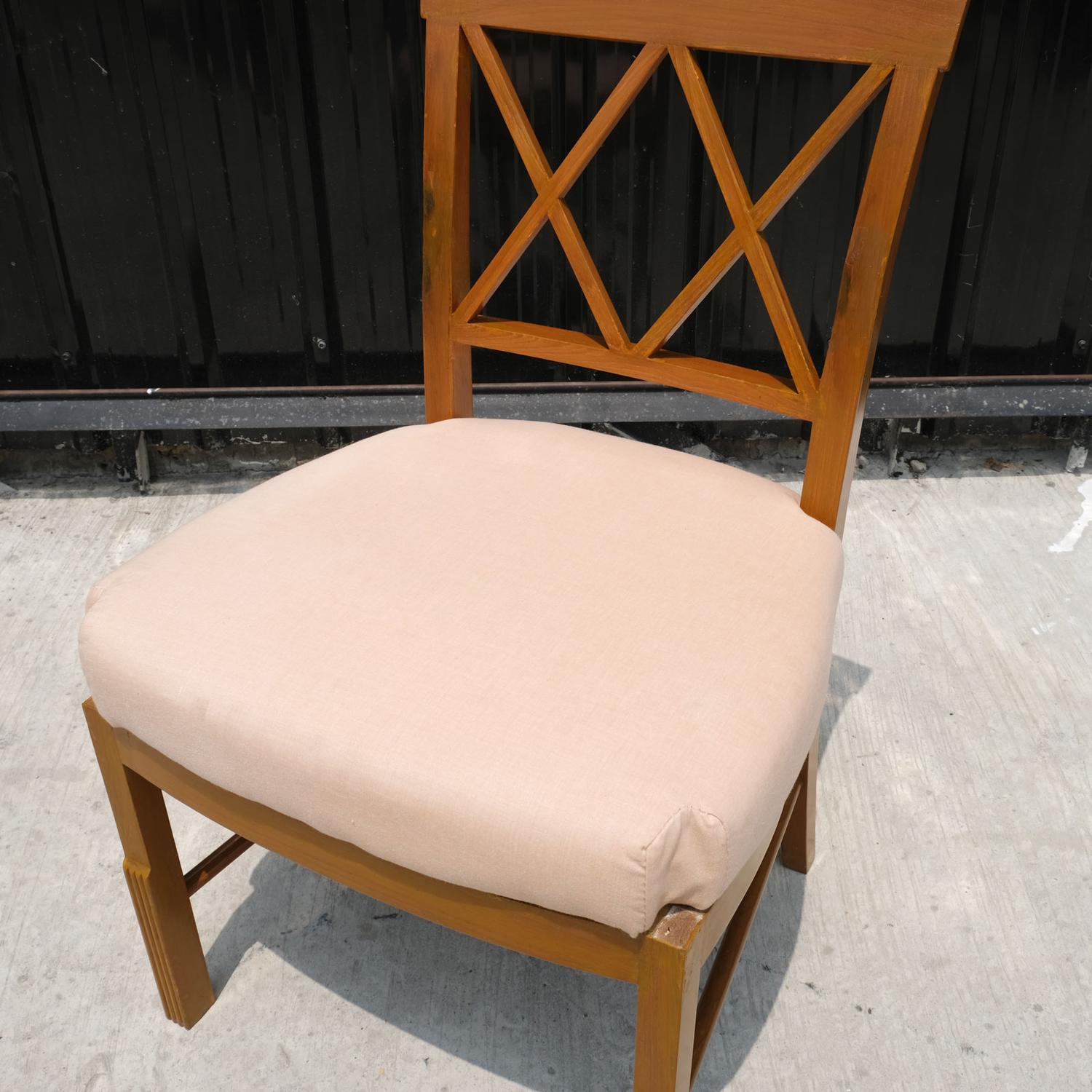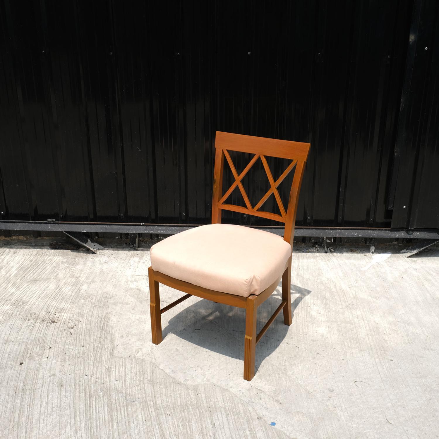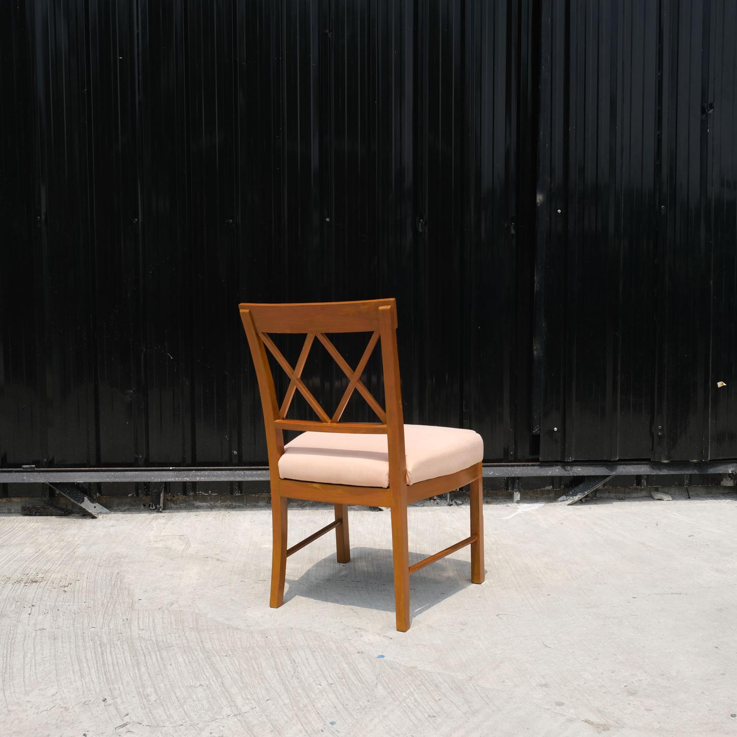 เก้าอี้โครงไม้สัก เบาะผ้าสีครีมส้ม