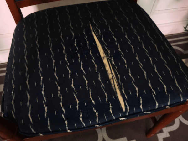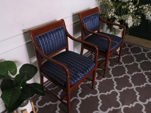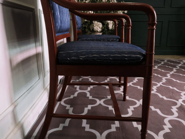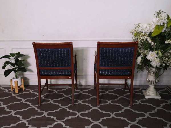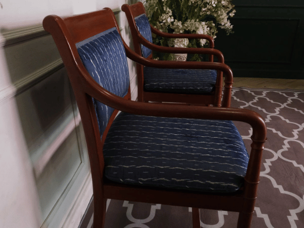 เก้าอี้โครงไม้สัก เบาะผ้าสีน้ำเงิน