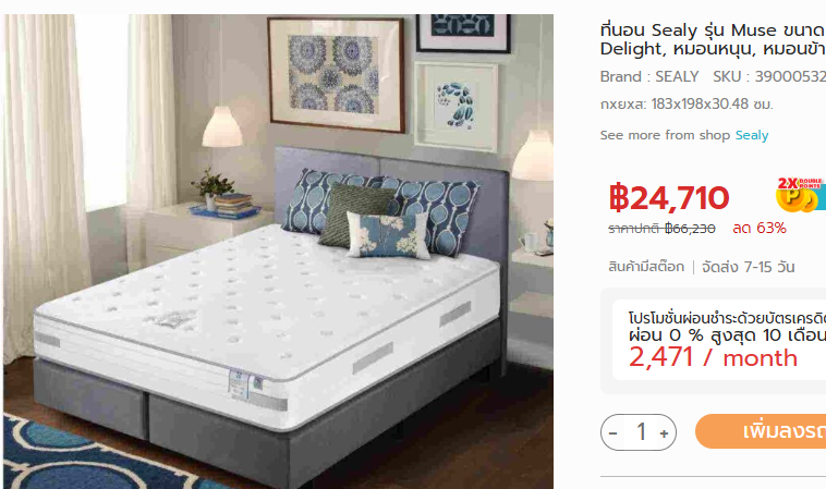 ที่นอน 5 ฟุต หนา 11 นิ้ว ยี่ห้อ Sealy รุ่น Muse (9,500.-)