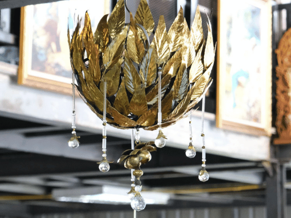 โคมไฟเพดาน โครงเหล็กใบไม้สีทอง