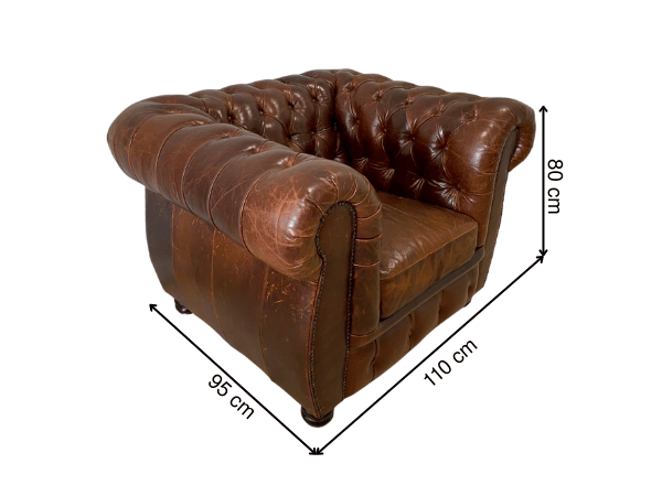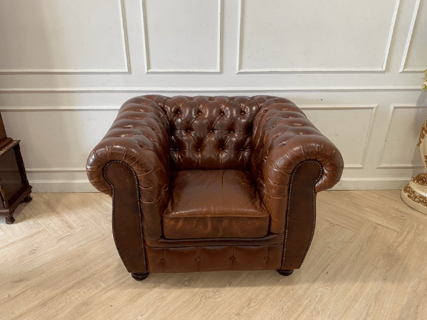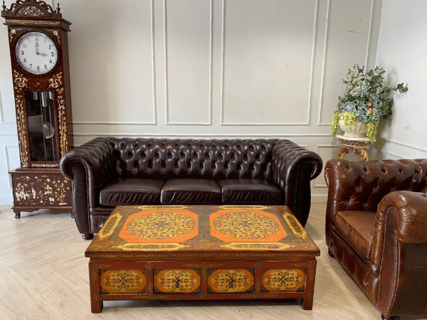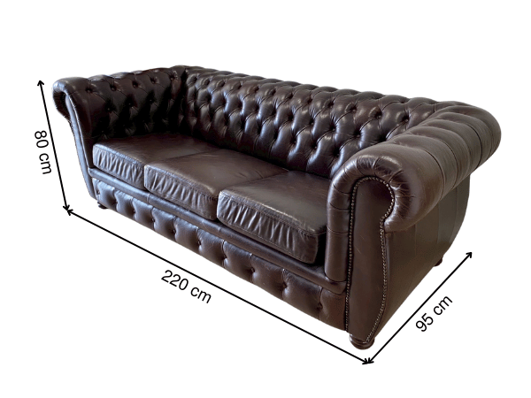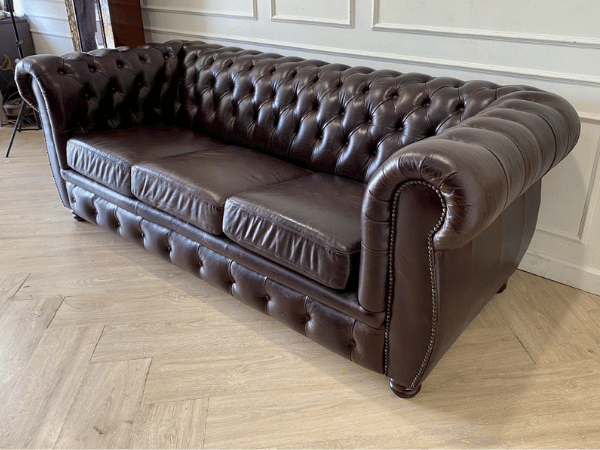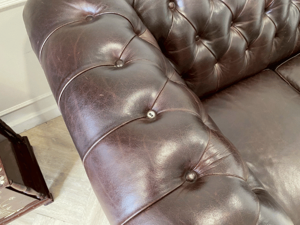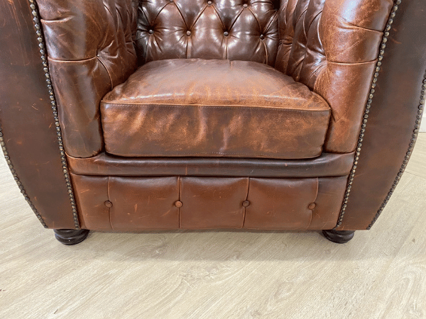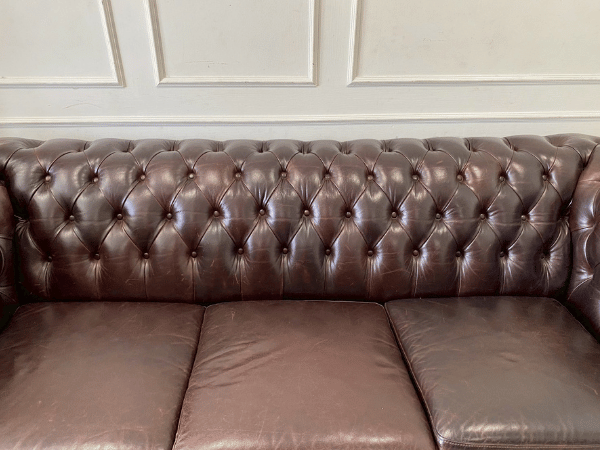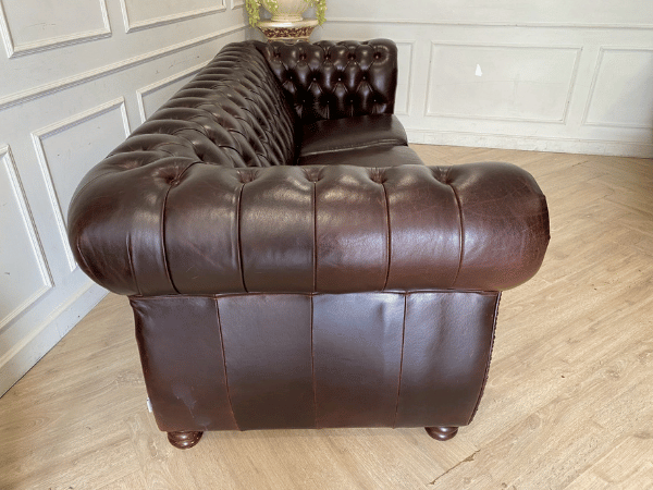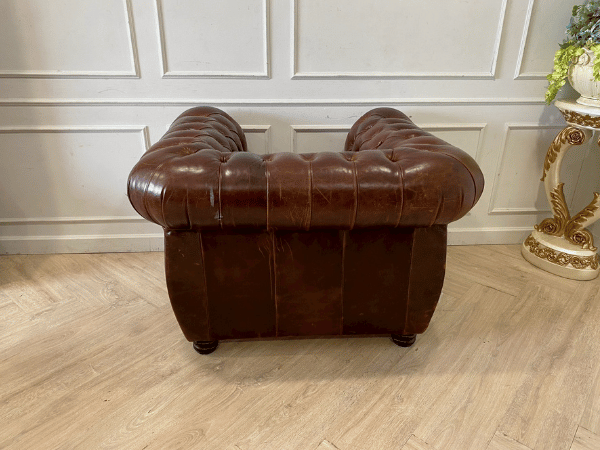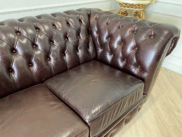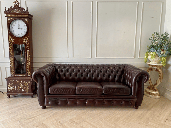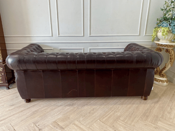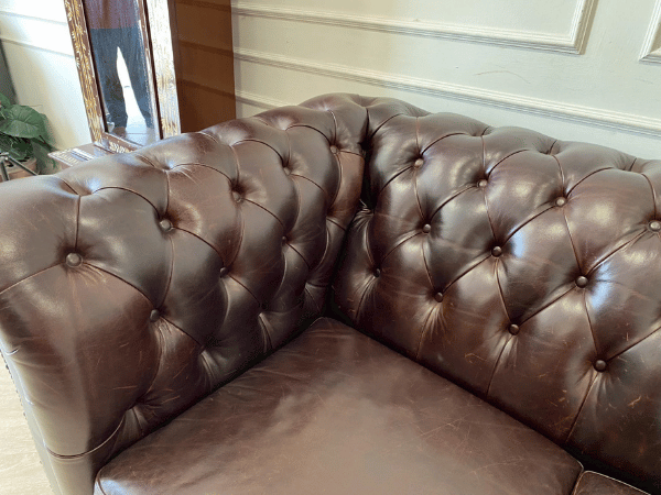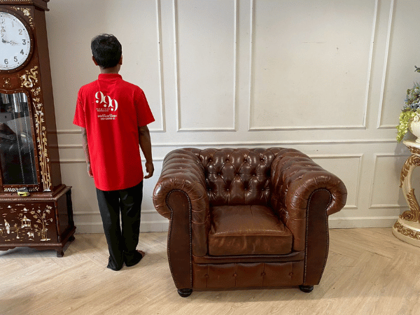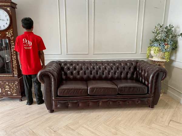 โซฟารับแขก 3+1 ที่นั่ง เบาะหนังทั้งตัว ปักหมุด ดึงกระดุม สีน้ำตาล สไตล์เชสเตอร์ฟิลด์ (Chesterfield) ยี่ห้อ SB FURNITURE