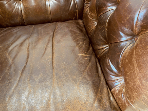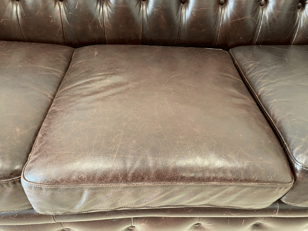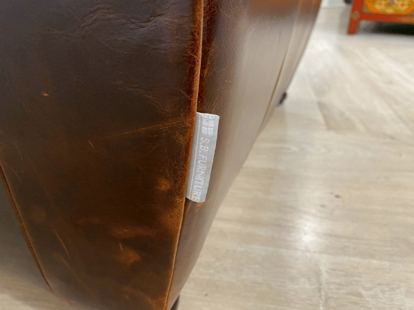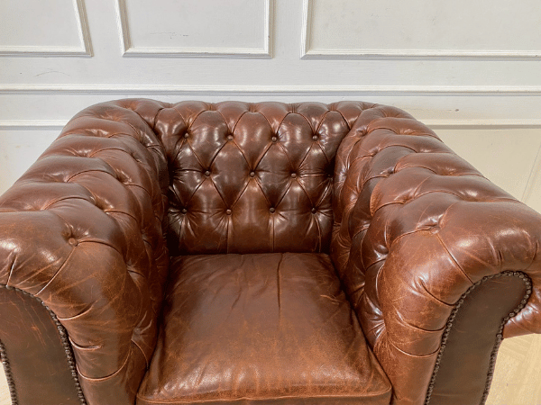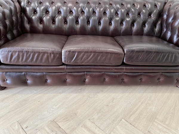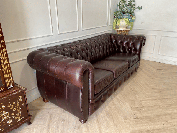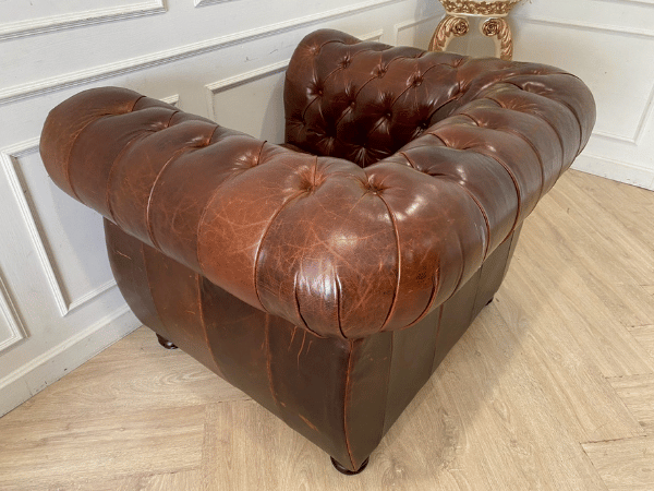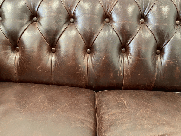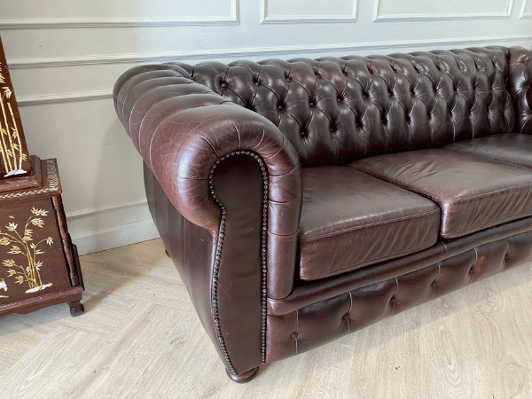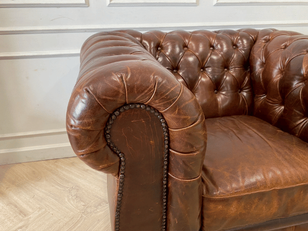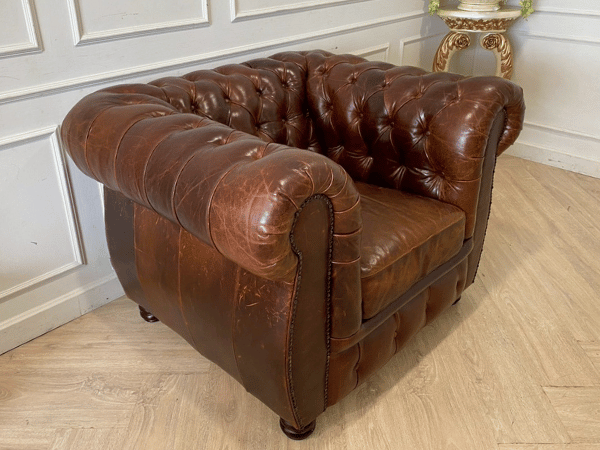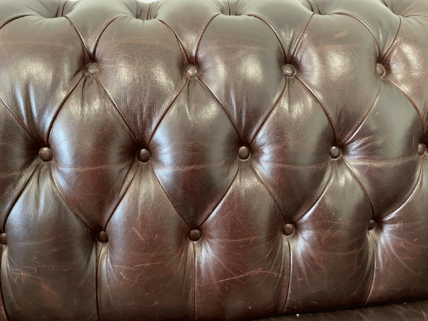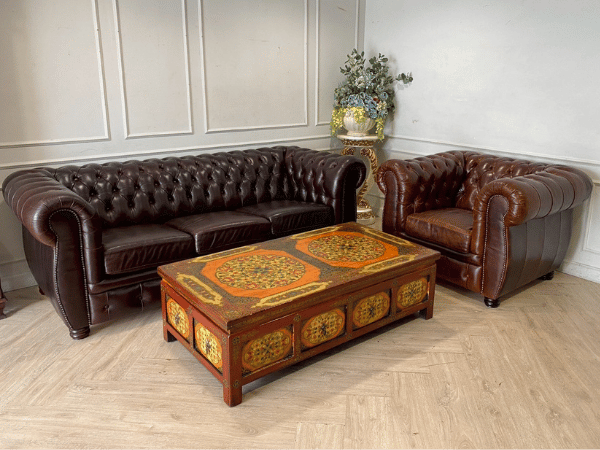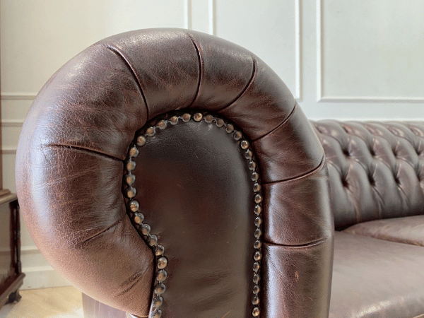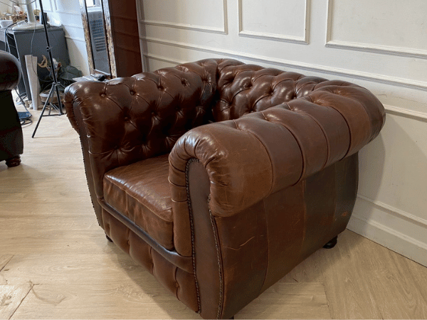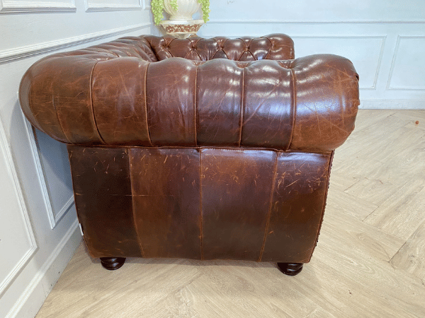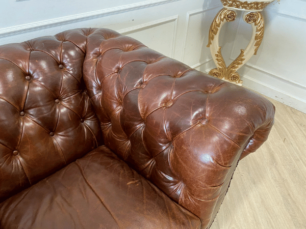 โซฟารับแขก 3+1 ที่นั่ง เบาะหนังทั้งตัว ปักหมุด ดึงกระดุม สีน้ำตาล สไตล์เชสเตอร์ฟิลด์ (Chesterfield) ยี่ห้อ SB FURNITURE