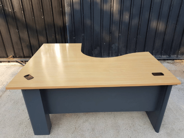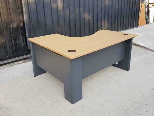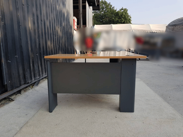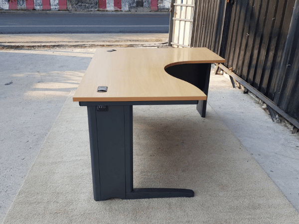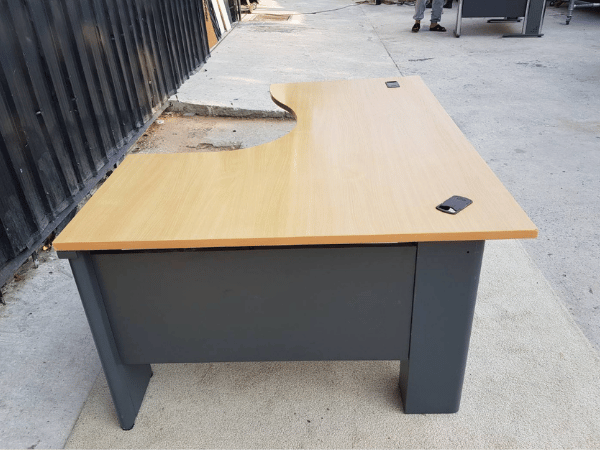 ชุดโต๊ะผู้บริหารทรง L โครงไม้ ขาเหล็กและขาไม้ มีตู้ 3 ลิ้นชัก (2)