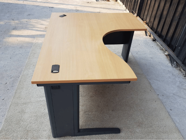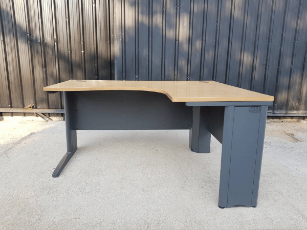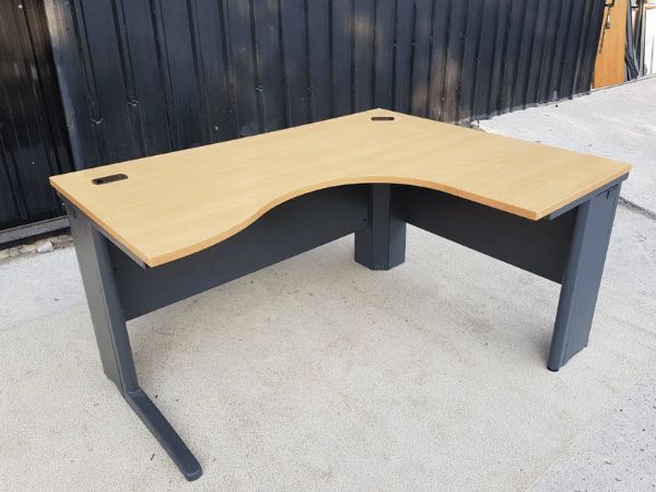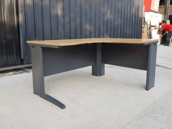 โต๊ะทำงานเข้ามุมL ขาเหล็กสีดำ ท็อปไม้ 150 cm