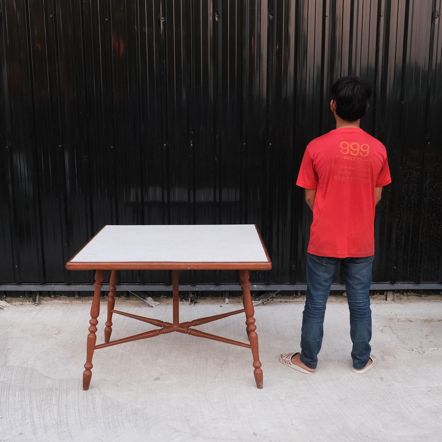 โต๊ะโครงไม้สัก สี่เหลี่ยมจตุรัส ขากลึง- size 98 x 98 x 73 cmกว้าง x ลึก x สูง เซนติเมตร