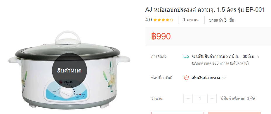 AJ หม้อเอนกประสงค์ ความจุ: 1.5 ลิตร รุ่น EP-001