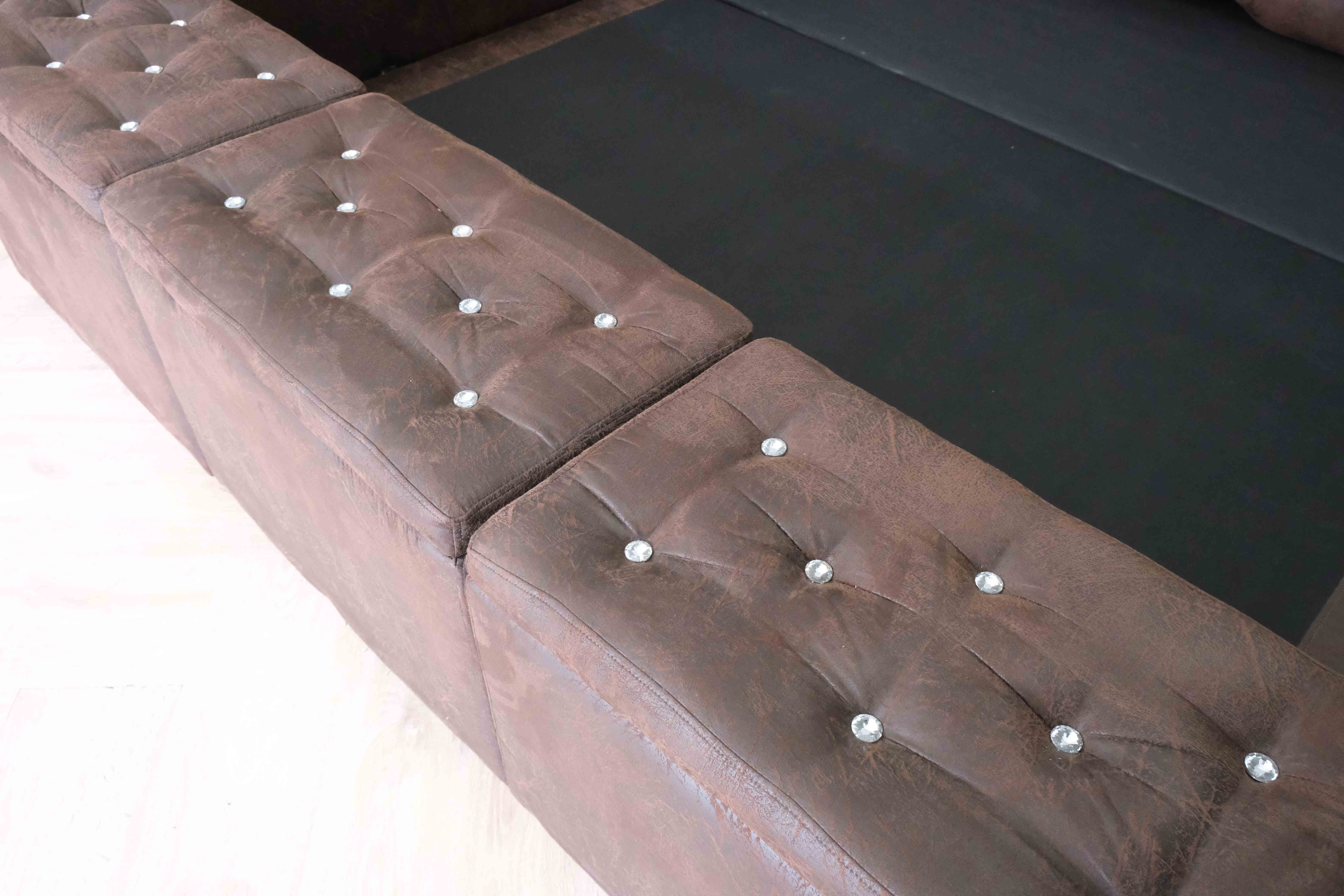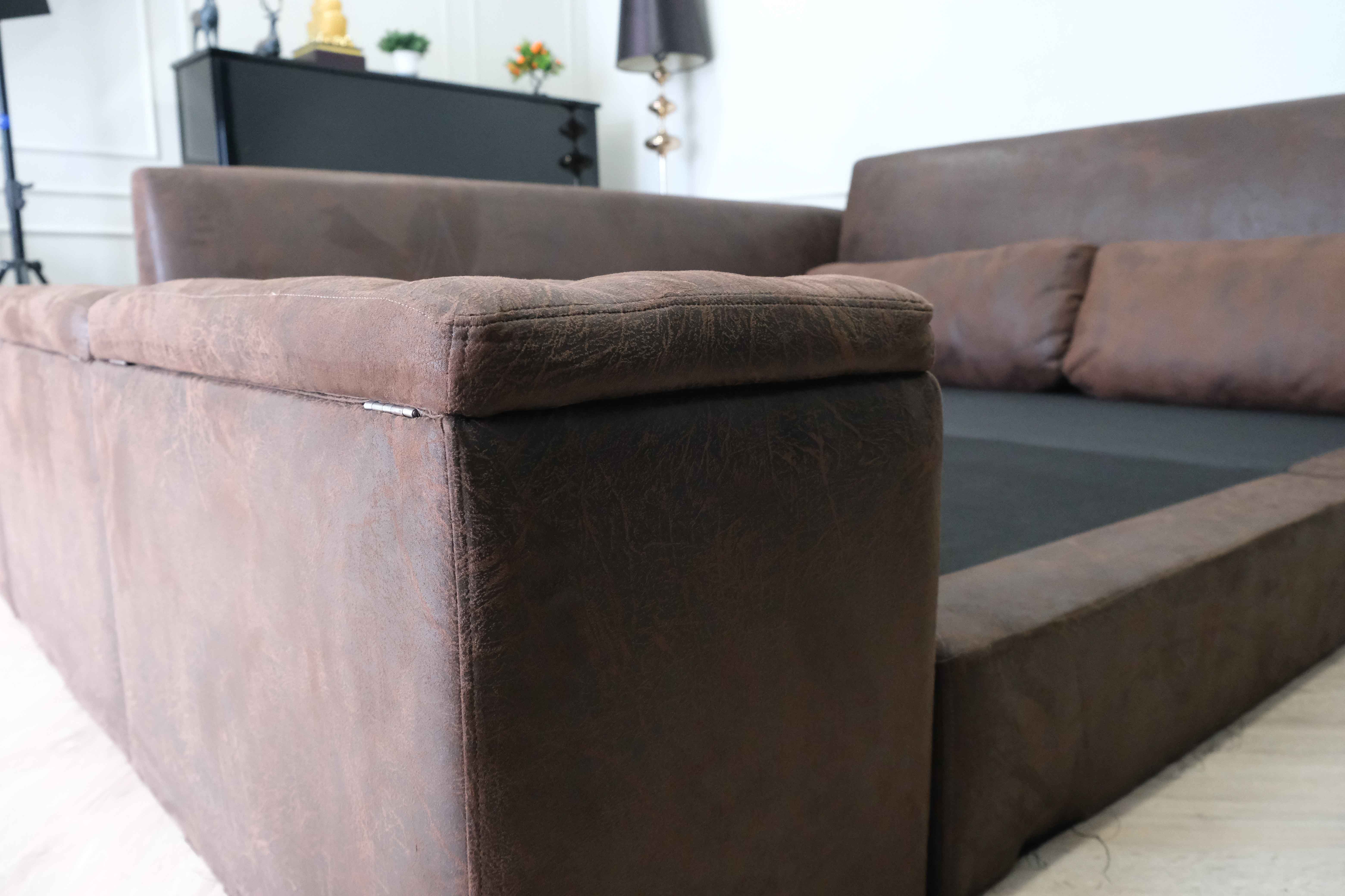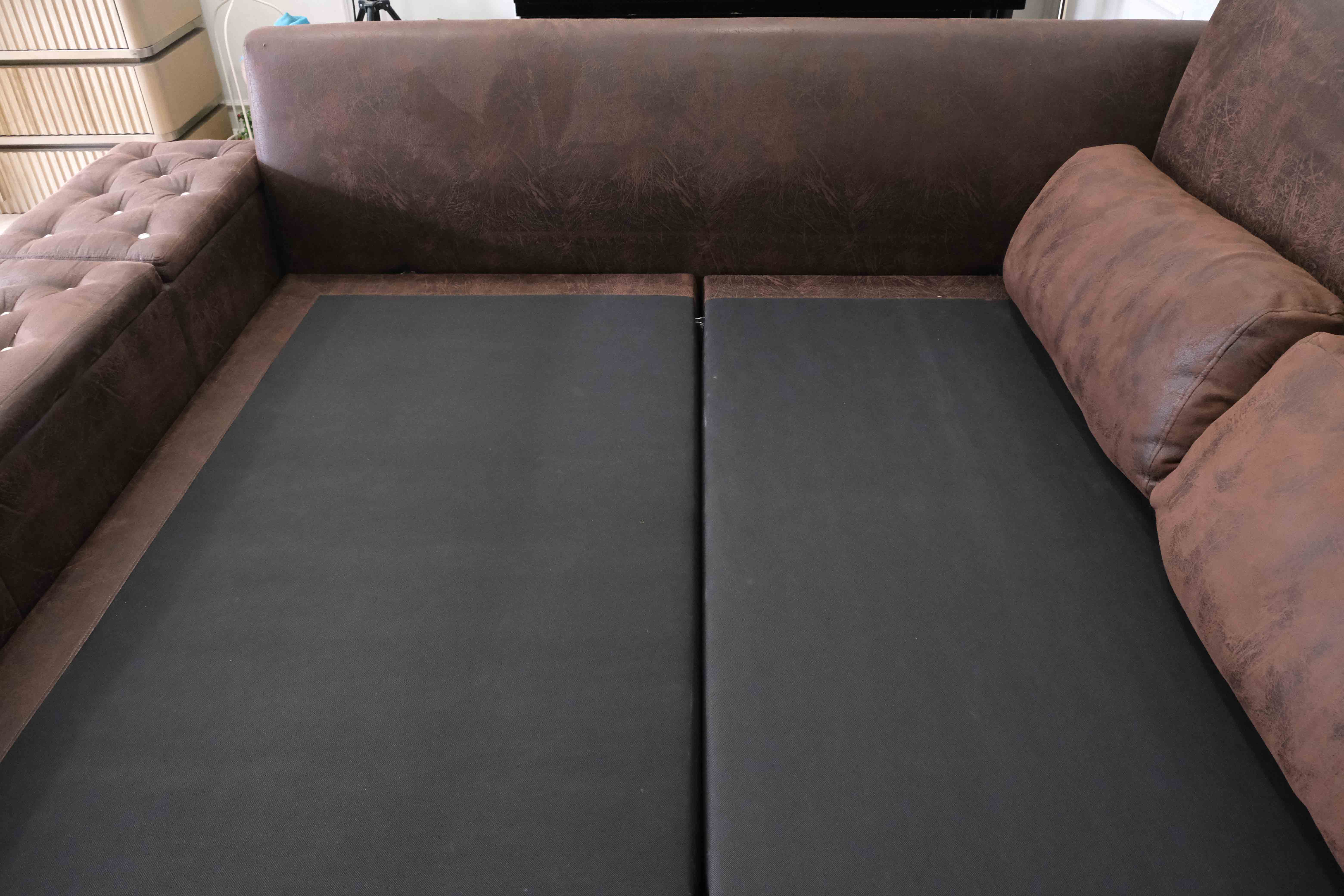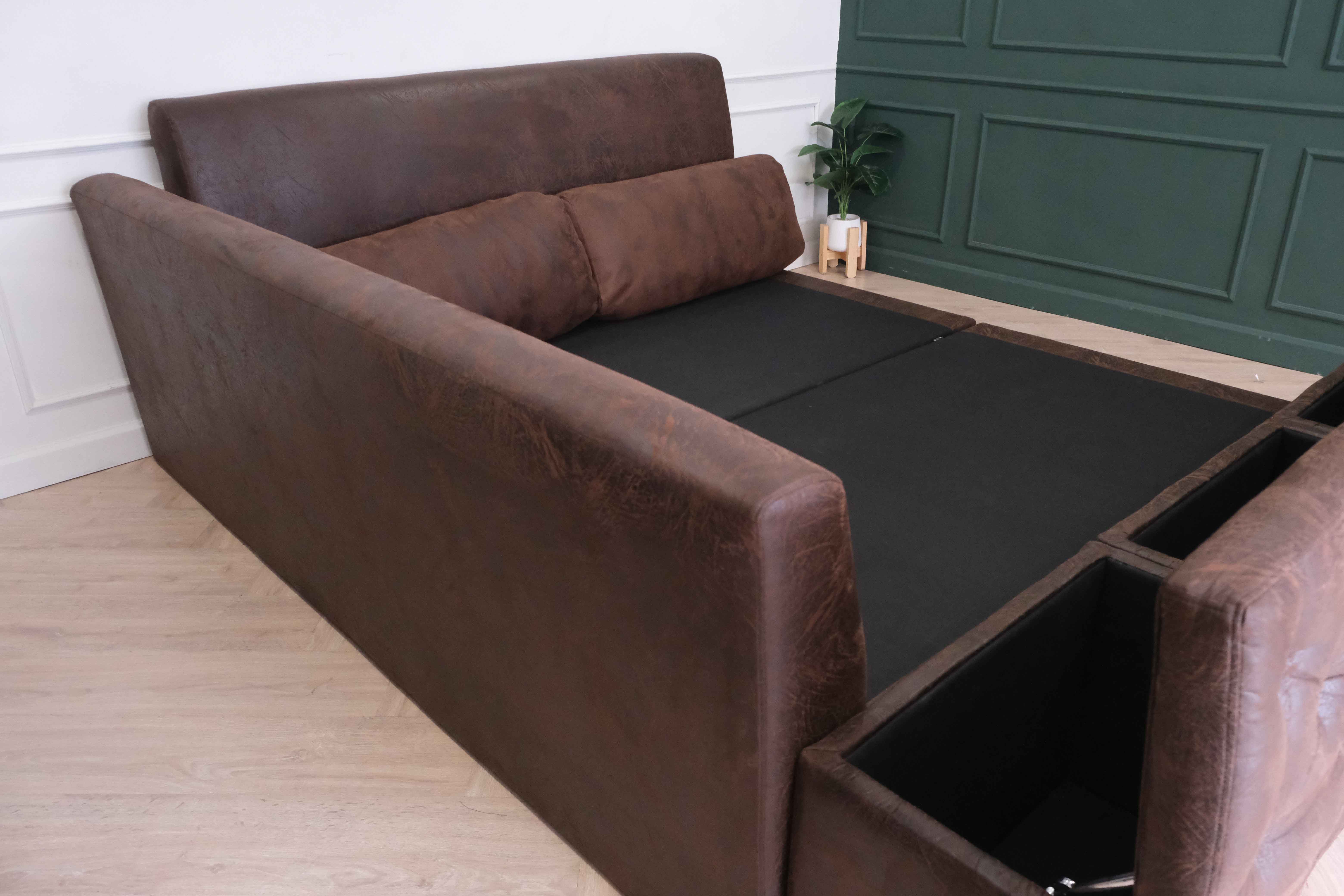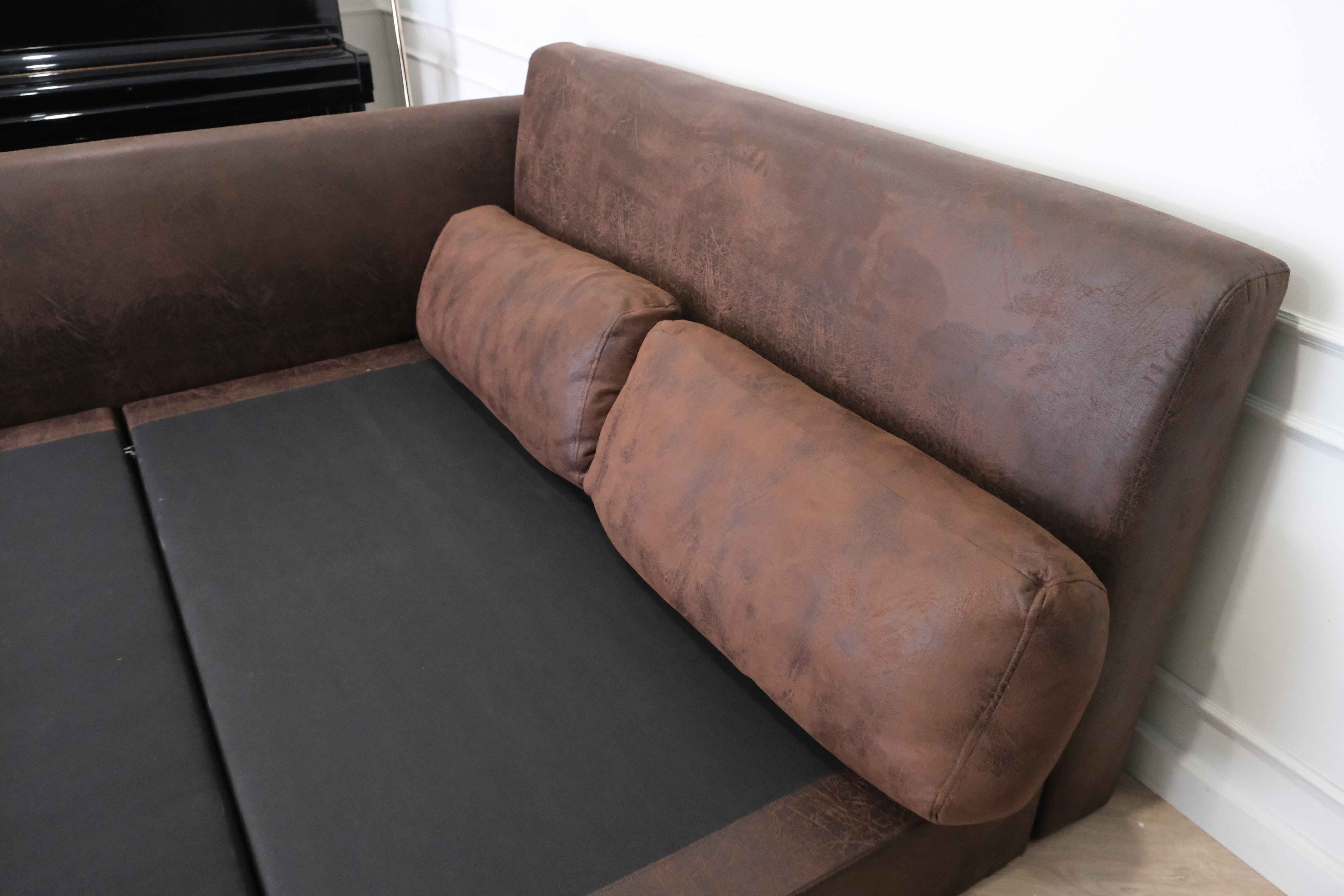 เตียงนอน ผ้าลายหนังสีน้ำตาล ขนาด6ฟุต 3กล่องเก็บของตรงขาเตียง ฝากล่องดึงกระดุมเพชร พร้อมหมอน 2ใบ